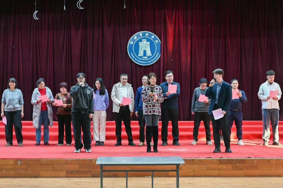 經濟管理學院李峰書記、李海萍副院長及其領導班子出席聯歡會,全體教職員工、學生代表及教職工家屬歡聚一堂,共同迎接美好新年。
