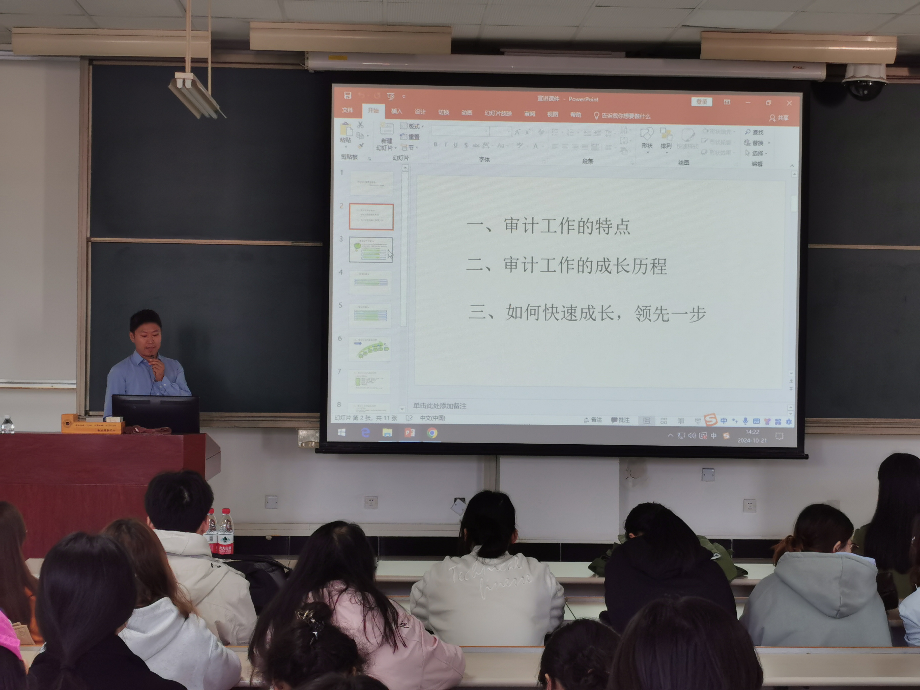 為積極推進2025屆畢業生就業工作,拓展我校學生的實習就業渠道,增強畢業生的職業認知,2024年10月21日,會計系邀請中審眾環會計師事務所來校開展校園宣講活動,此次活動也是會計學專業2021級學生《綜合實習》課程的一項內容。