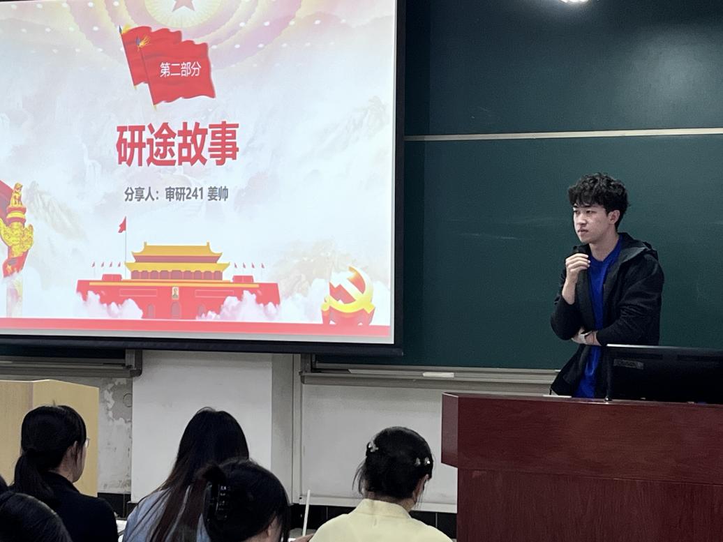 金禹霖同學在分享自己經驗的同時,特別強調了備考各階段需要做的工作,她還從研究技能的培養、參與競賽、黨團活動等方面分享了自己研究生階段的學習生活,激勵學弟學妹報考。