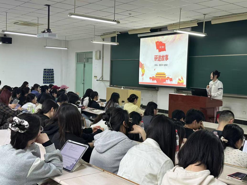 在活動的第二部分,研究生支部的4名學生黨員和1名入黨積極分子,對自己的考研經歷進行了分享。劉燃同學從院校選擇、考試科目、學習經驗等方面進行了全面闡述,尤其指出要保持良好的心態,應對考研之路上的磨礪。