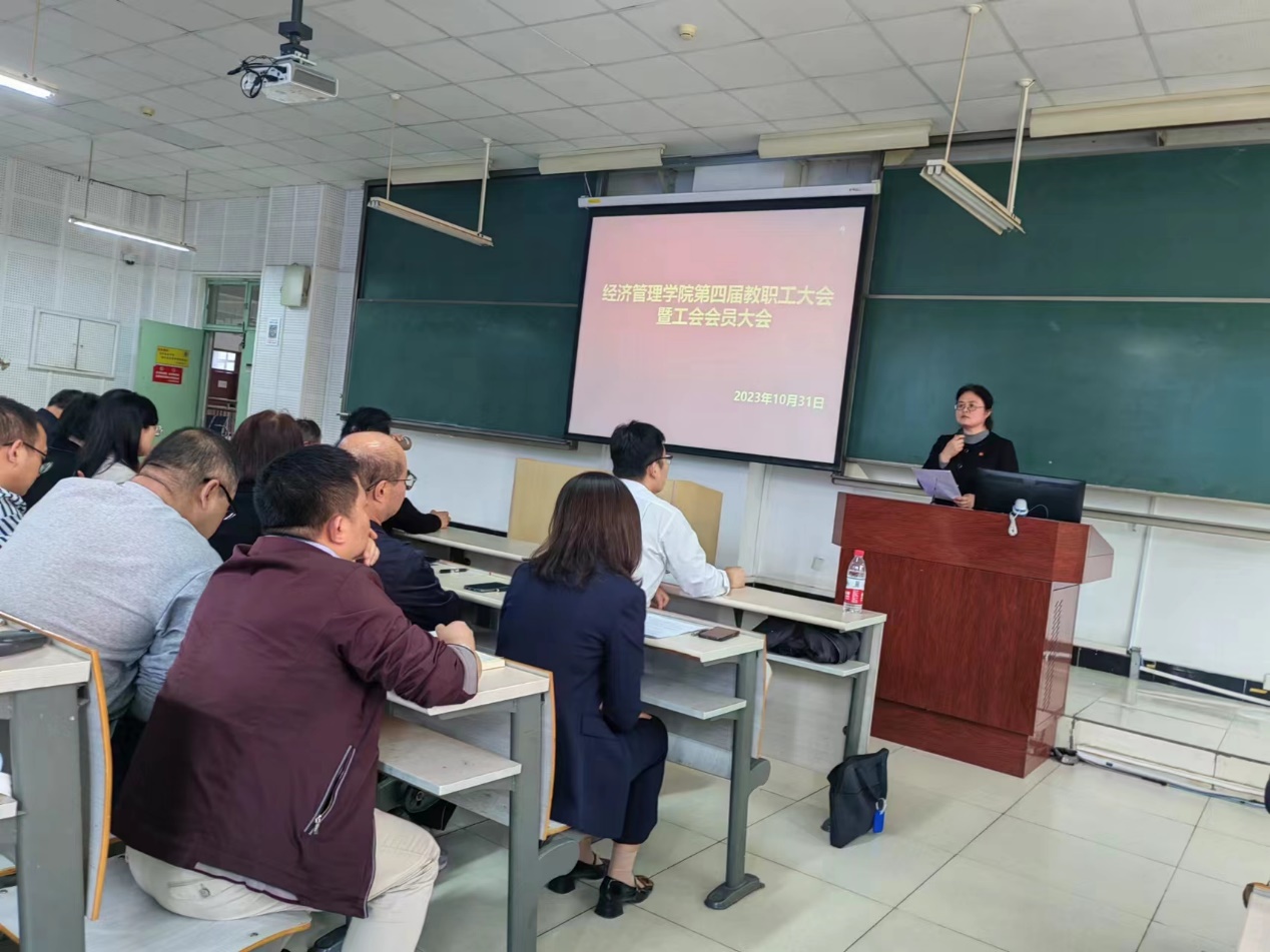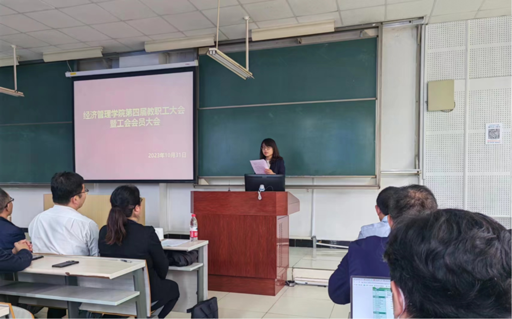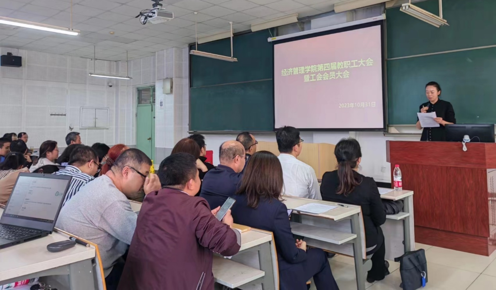 10月31日下午,經濟管理學院第四屆教職工大會暨工會會員大會在康205隆重召開。大會由經濟管理學院教學副院長邱瑩同志主持。校工會委員賈元玉同志出席了大會。