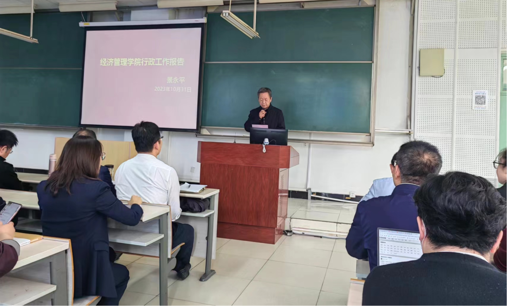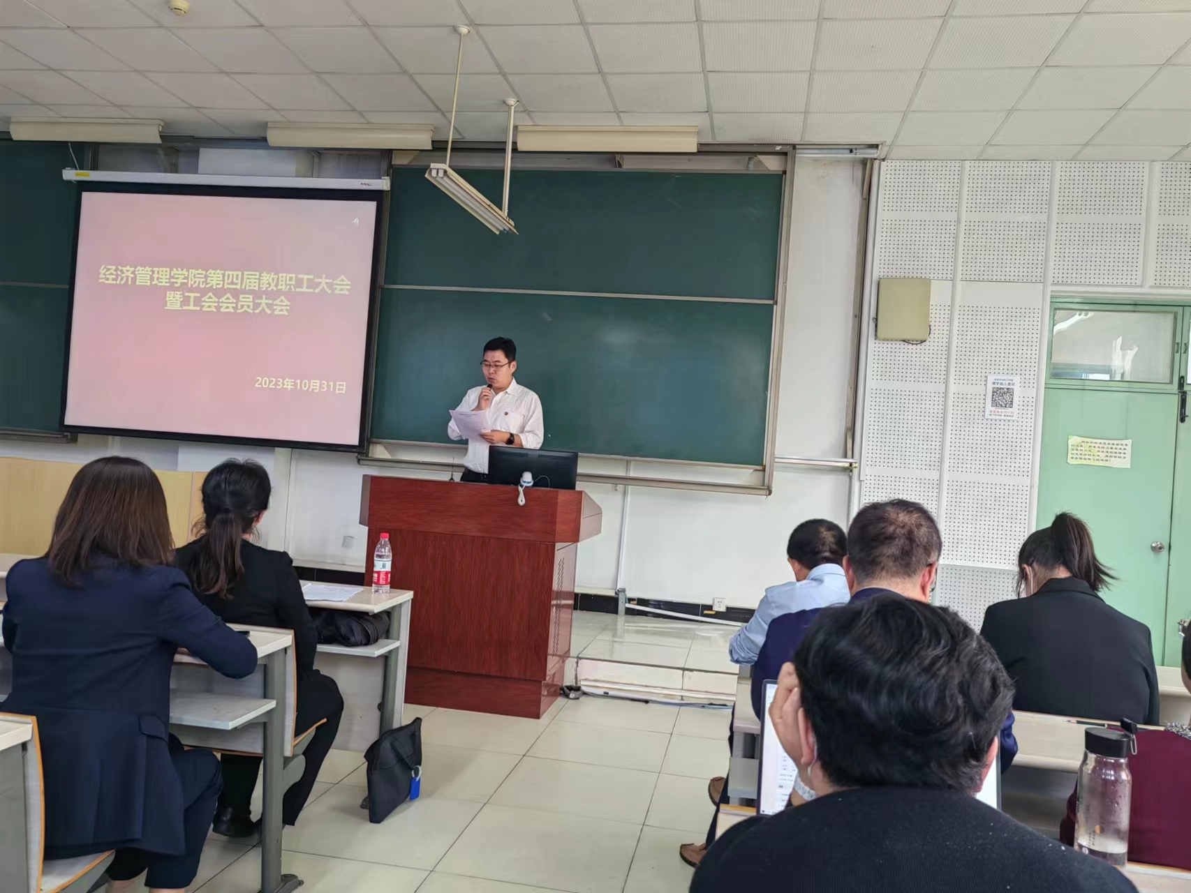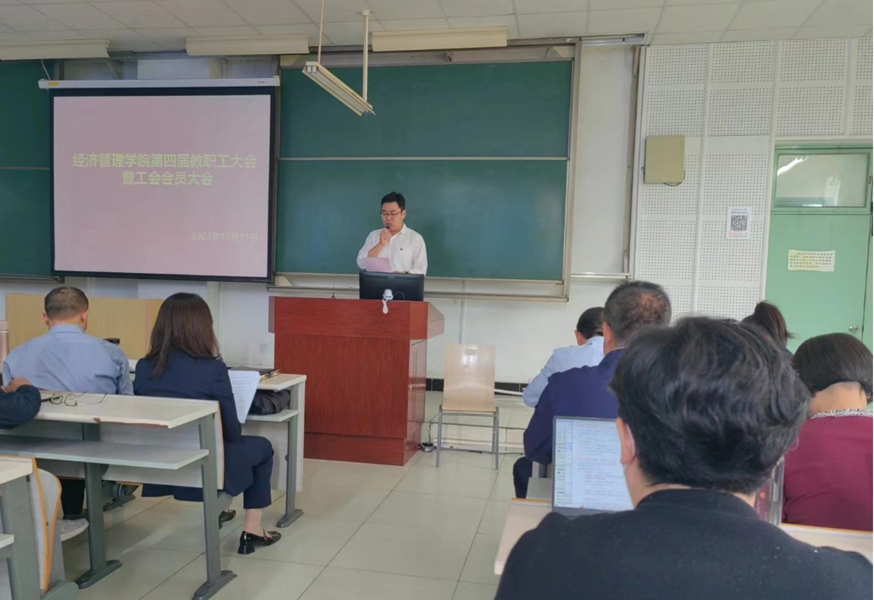 10月31日下午,經濟管理學院第四屆教職工大會暨工會會員大會在康205隆重召開。大會由經濟管理學院教學副院長邱瑩同志主持。校工會委員賈元玉同志出席了大會。
