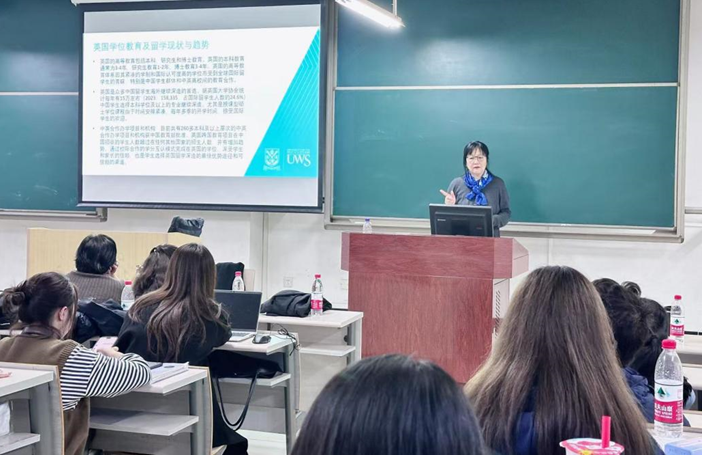 英國西蘇格蘭大學國際中心東亞區主任陳君博士以英國留學為主題,介紹了英國留學的優勢,以及留學西蘇格蘭大學的申請流程、費用預算、生活適應等實用信息,為有意留學英國的同學提供參考。