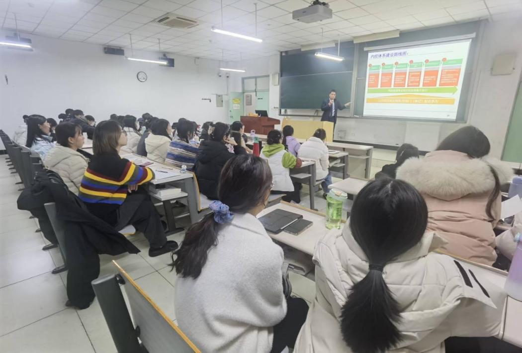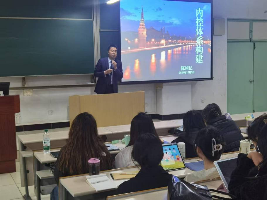 為進一步加強學生理論與實踐的融合,2024年12月5日,經濟管理學院“實務專家進課堂”系列講座活動邀請世紀金源集團陳國記高級會計師進行了以內控體系構建為主題的專題講座。本次講座由經濟管理學院李海萍副院長主持,2024級全體審計專業碩士研究生及部分碩士導師參加了此次活動。