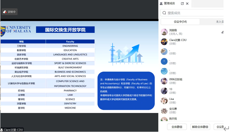 馬來亞大學彭霞老師線上做“馬來亞大學學習與生活”報告