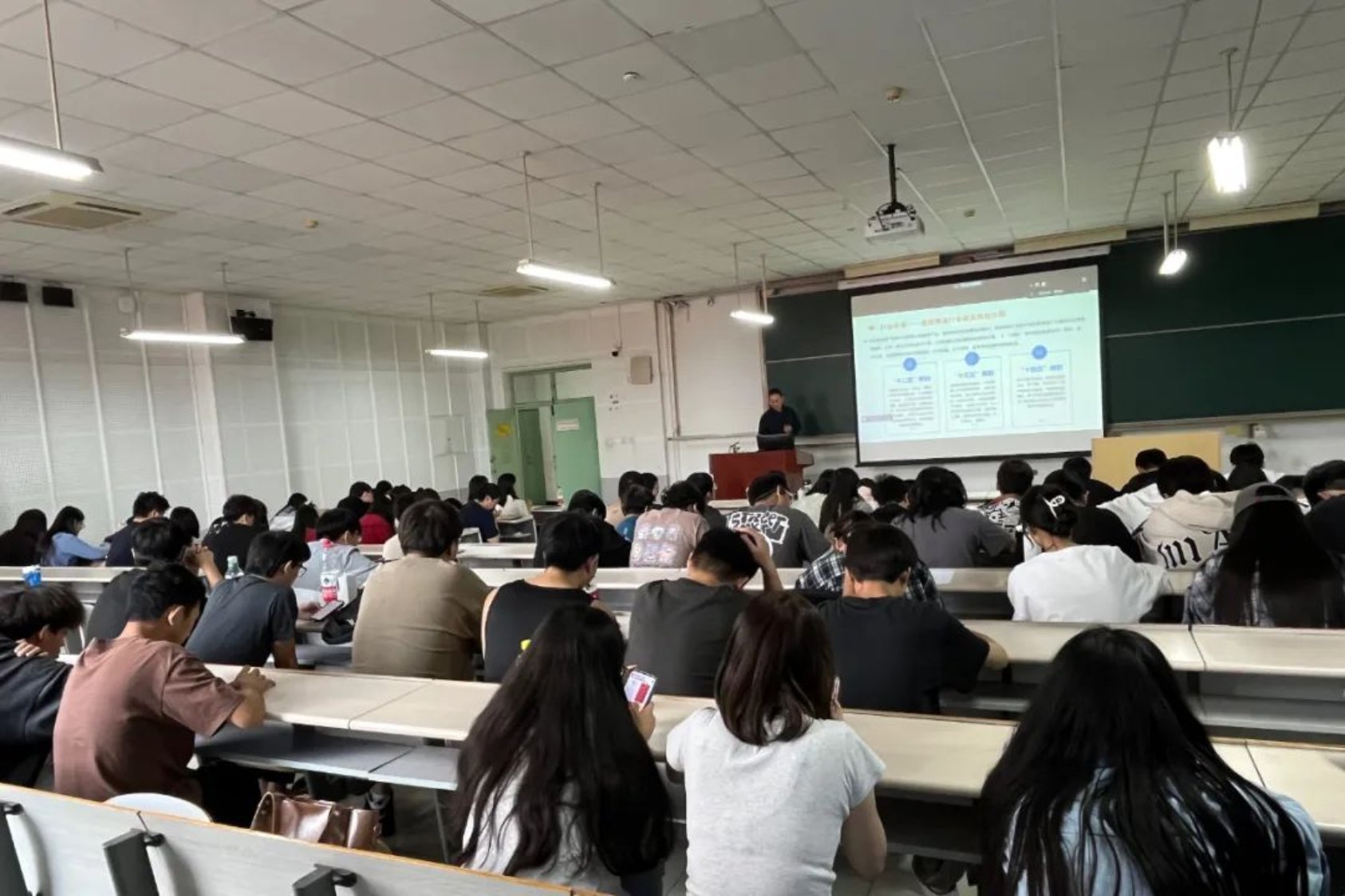 交流結束后,郭威常務副秘書長以線上線上方式,為物流管理、營銷和電商專業2021級、2022級近200名學生做了報告。