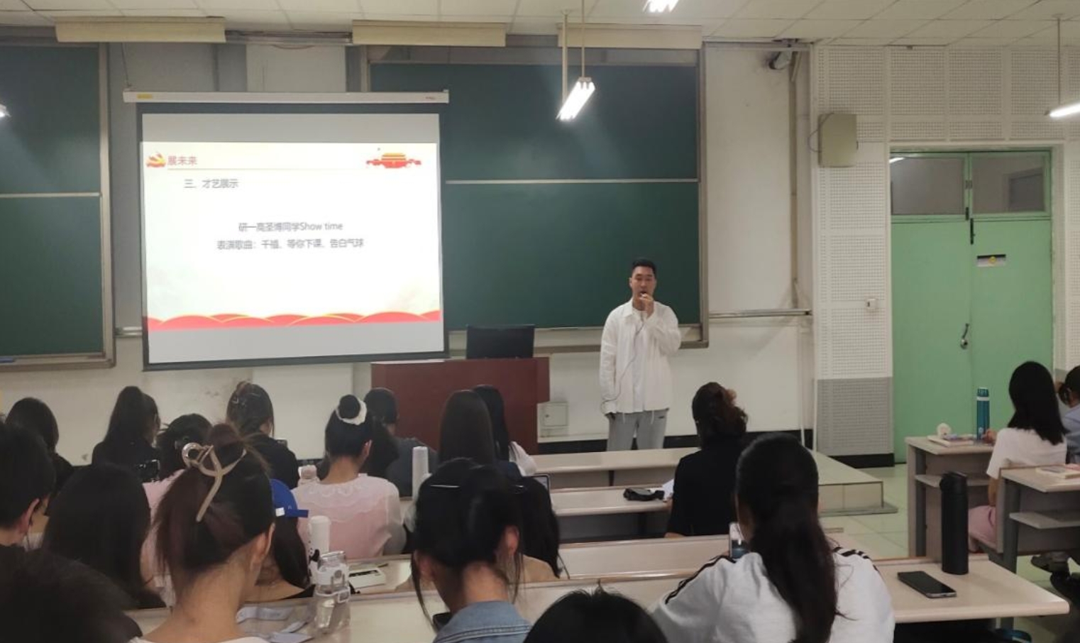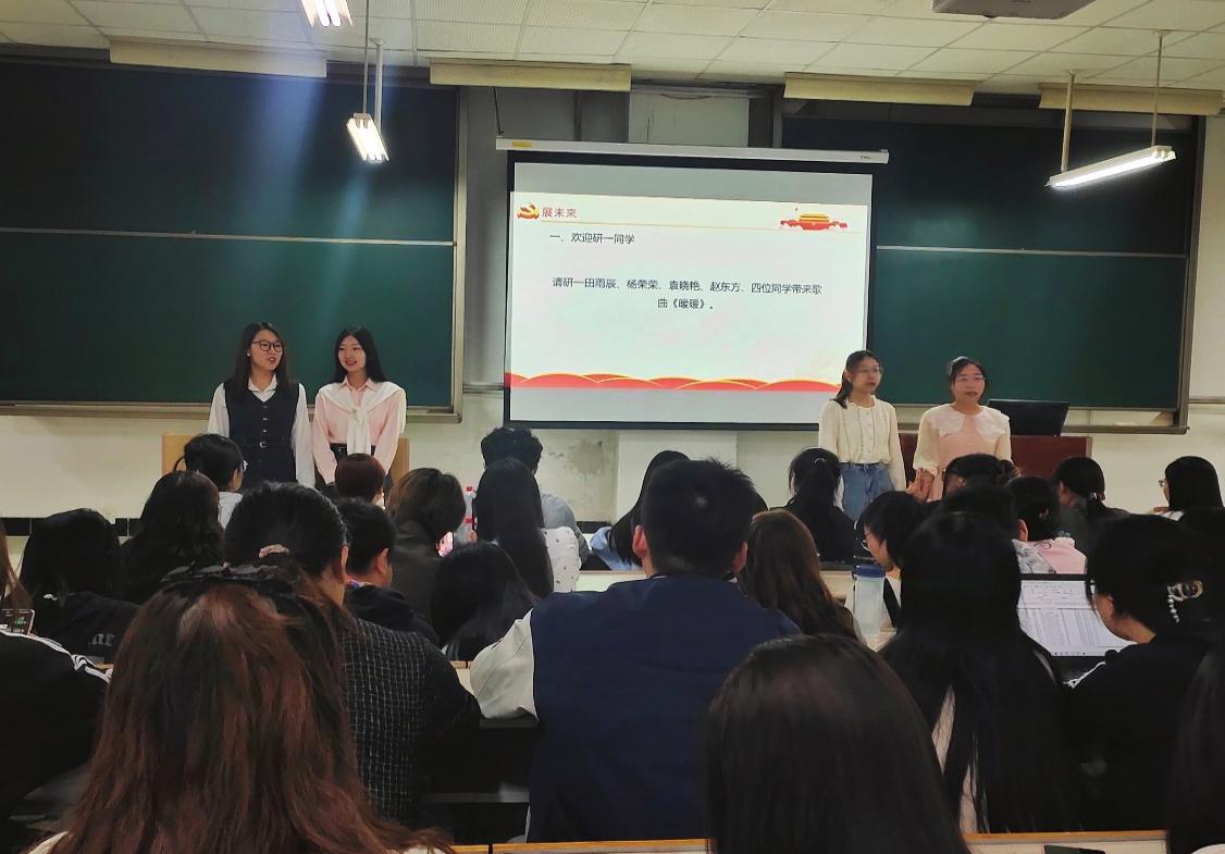 之后的第二大環(huán)節(jié)則圍繞新生工作展開。首先,由研一新生做相互介紹對方,以加深彼此了解,增進友誼,為今后的學習生活和團隊協(xié)作奠定基礎。研二的張好好、谷迅同學帶來歌曲《北京歡迎你》,表達了對研一新生的歡迎,讓他們更快地融入到新的學習環(huán)境,感受校園文化的魅力。研一的田雨辰、楊榮榮、袁曉艷、趙東方四位同學也用歌曲表演《暖暖》回應學哥學姐們的熱情歡迎,表達了作為新生感受到的研究生大家庭的關懷和溫暖。