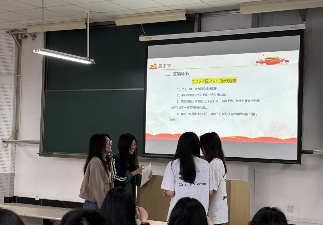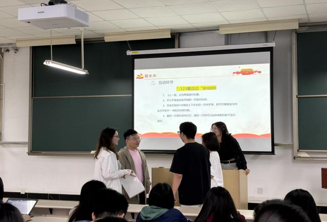 接下來,審研231杜艷偉同學組織大家進行了“123看這邊”的游戲。通過這樣的游戲形式,加強了小組成員間的互動與合作,幫助同學們在緊張的學習之余緩解壓力、放松心情。同學們積極參與。