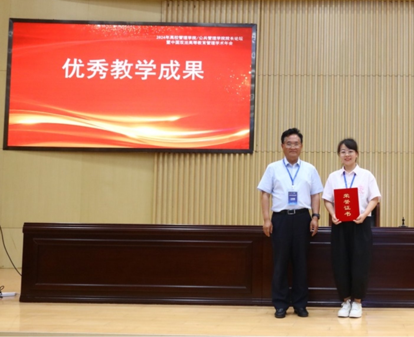 在“優秀教學成果交流會”上,姚迪老師做了《多元融合·階次遞進:應急物流管理課程的教學創新與實踐》的課程建設成果匯報,就課程“痛點”分析、創新思路與舉措、創新成效與成果等內容,與哈爾濱工業大學、復旦大學、成都理工大學、南京信息工程大學等課程團隊教師進行了深入交流與探討。學習了知名高校的教學創新實踐策略與方法,為進一步優化課程建設提供了良好思路,并榮獲優秀教學成果一等獎。