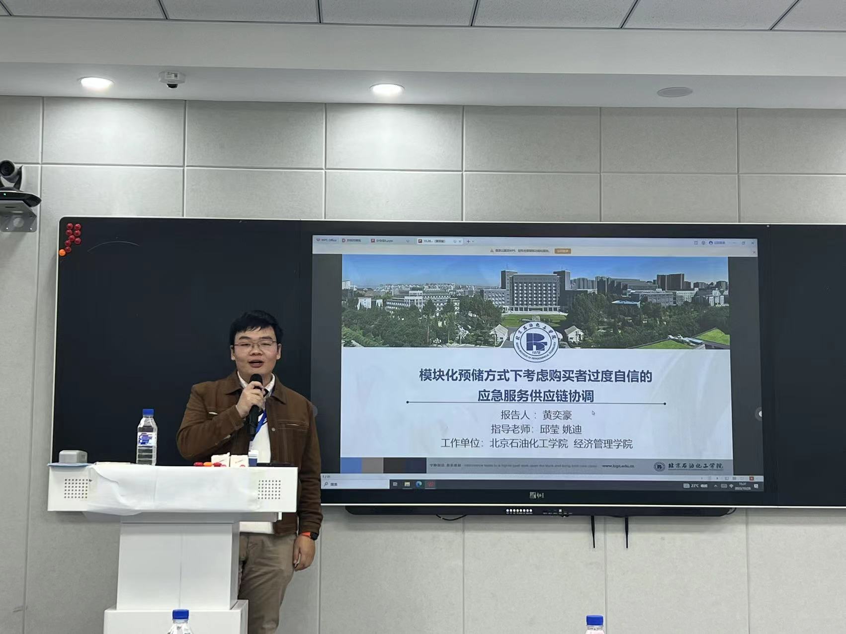 會(huì)上,我院碩士研究生黃奕豪在分論壇5“工業(yè)生產(chǎn)安全與應(yīng)急研究”中作題為《模塊化預(yù)儲(chǔ)方式下考慮購(gòu)買者過(guò)度自信的應(yīng)急服務(wù)供應(yīng)鏈協(xié)調(diào)》的專題報(bào)告,報(bào)告內(nèi)容受到與會(huì)專家學(xué)者們的關(guān)注。