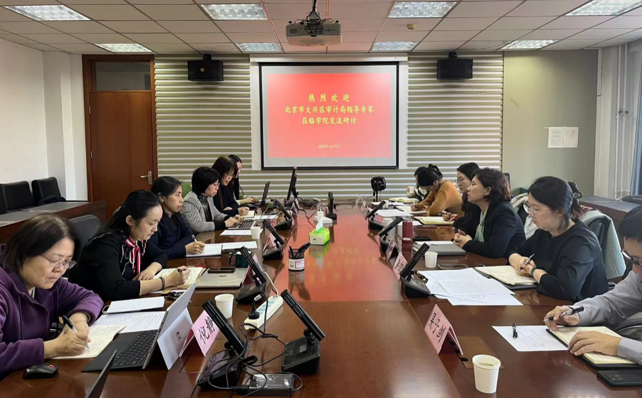 2024年12月5日下午,北京市大興區審計局李妍副局長一行6人蒞臨經濟管理學院,就自然資源、資源環境以及領導干部自然資源資產離任審計進行專題研討。學院副院長李海萍、趙欣娜及多位相關教師參加了本次座談交流會。會議于14:00在康333會議室舉行。