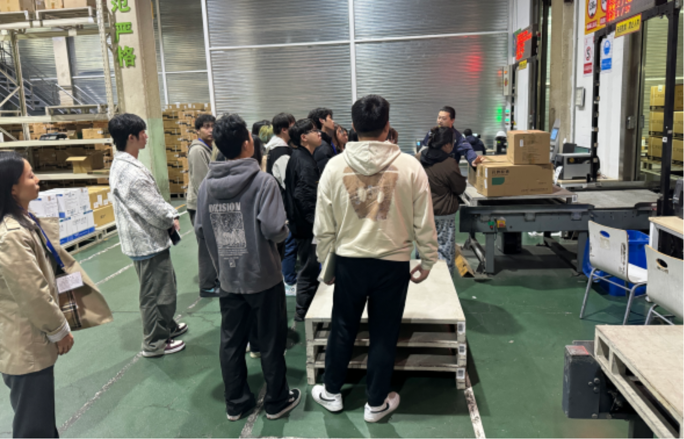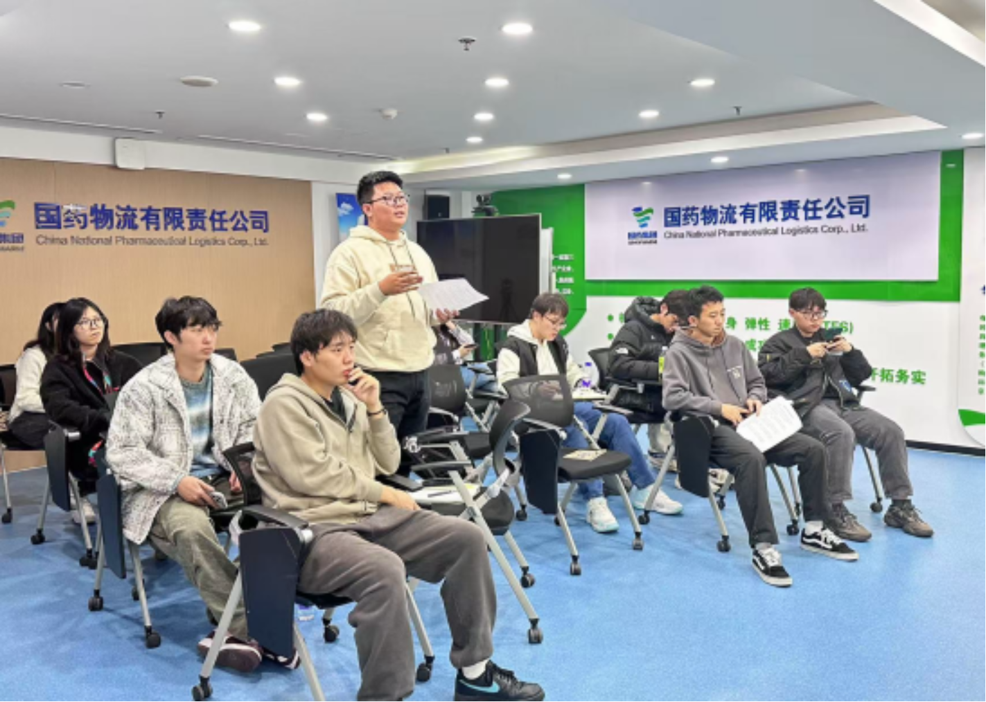 與此同時,在國藥物流有限責任公司,學生們在醫藥物流倉庫中強化了對自動碼垛、自動化出入庫系統等物流設施運作過程的理解,見證了醫藥物流運行的高效與精準,通過負責人對自動化分揀系統、嚴謹質量控制流程深入的講解,體會到現代物流的智慧與力量。