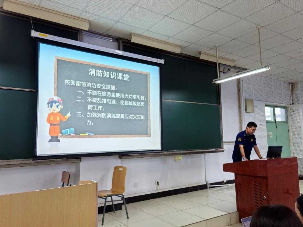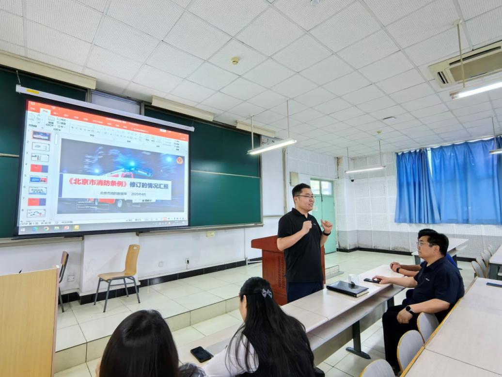 活動伊始,固威警官通過播放真實火災案例視頻,以觸目驚心的畫面警示師生火災危害,也通過視頻短片講解了校園消防安全應注意的事項及逃生方法。隨后,警官詳細解讀了新修訂的《北京市消防條例》重點內容,特別強調校園消防安全管理新規。