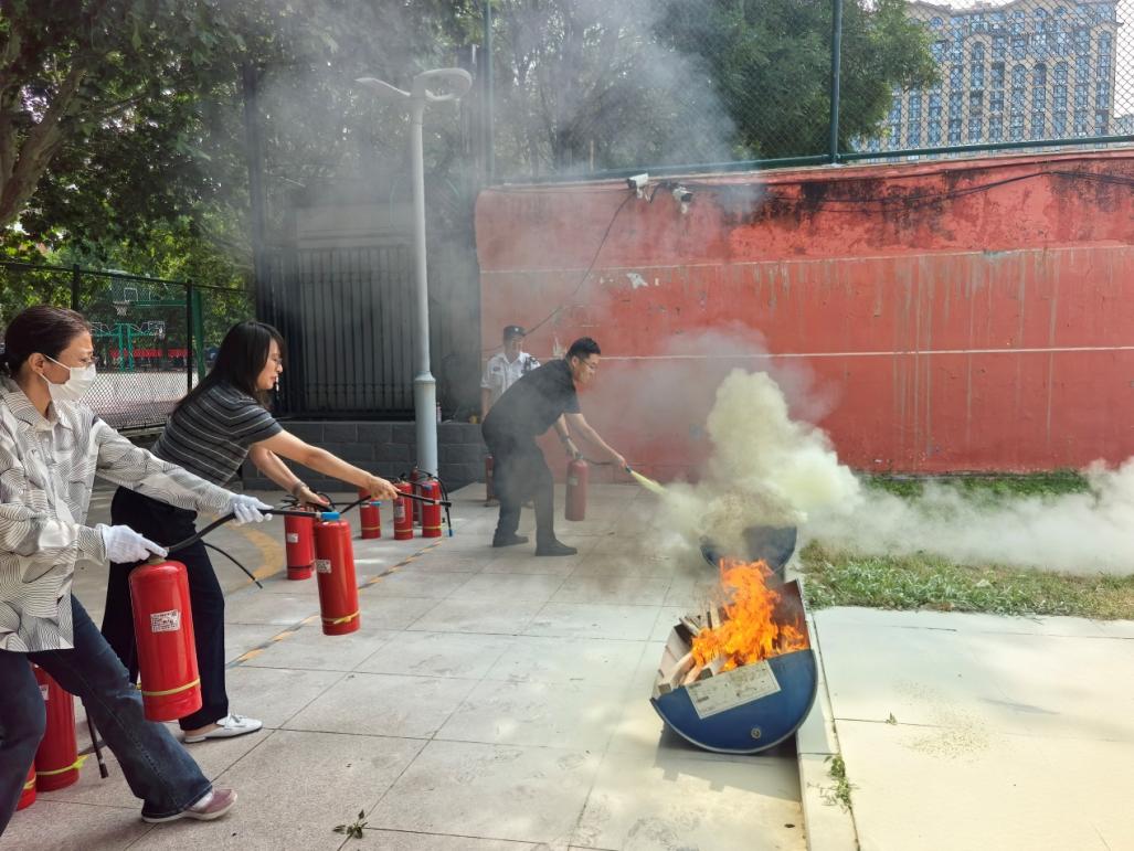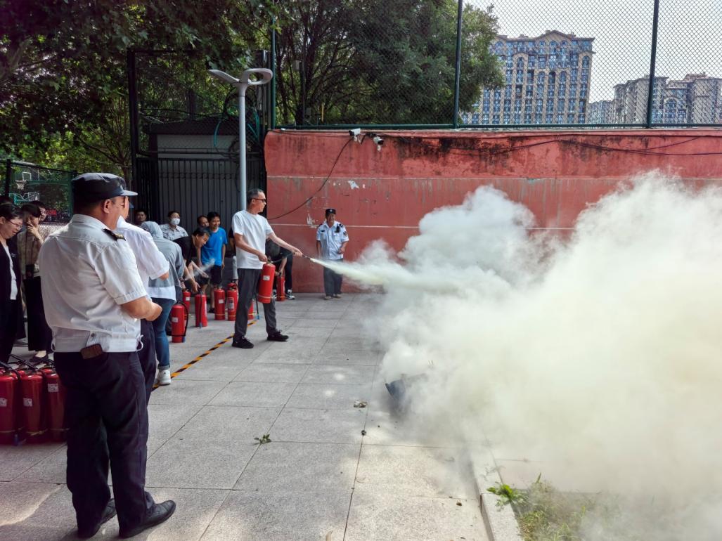理論培訓結束后,全體參訓人員在操場進行滅火實操演練。韓海波警官展示了干粉滅火器的使用方法,指導大家記住“提、拔、握、壓”四個關鍵動作,之后指導全院教職工逐一使用干粉滅火器,撲滅模擬火源。參加演練的教職工紛紛表示:"這次培訓讓我真正掌握了滅火器的使用方法,遇到緊急情況不再慌亂。"