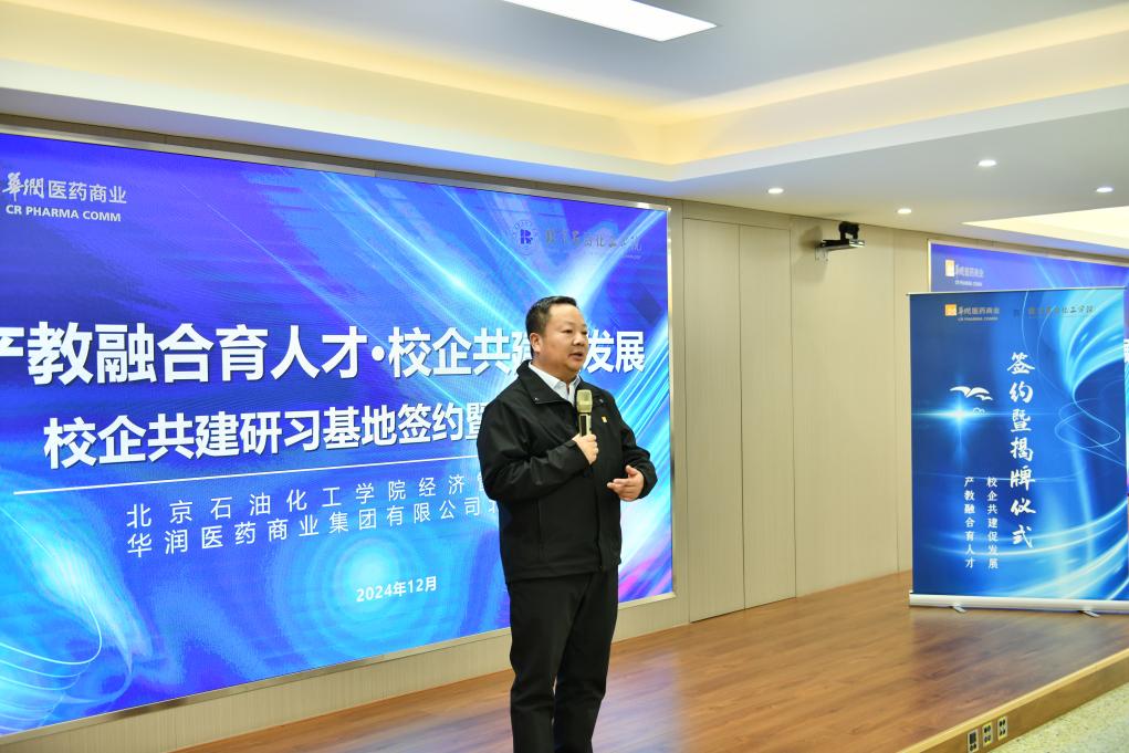 為貫徹落實我校和華潤醫(yī)藥商業(yè)集團有限公司戰(zhàn)略合作框架協(xié)議,本著“真誠合作、優(yōu)勢互補、相互支持、共同發(fā)展”原則,共同為北京“四個中心”功能建設(shè)和醫(yī)藥物流和供應(yīng)鏈發(fā)展做貢獻,2024年12月20日,經(jīng)濟管理學(xué)院和華潤醫(yī)藥商業(yè)集團有限公司北京區(qū)域(以下簡稱華潤醫(yī)商北京區(qū)域)舉行校企共建研習(xí)基地簽約暨揭牌儀式。