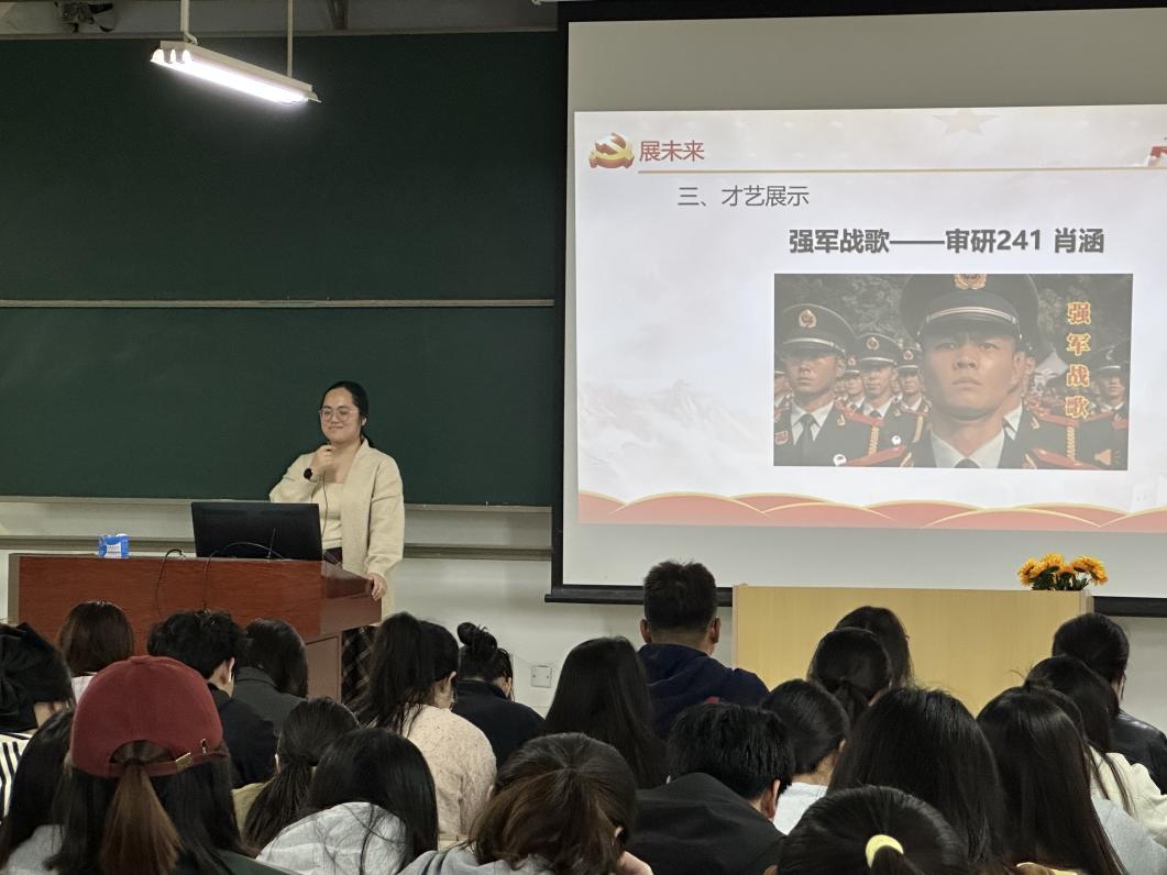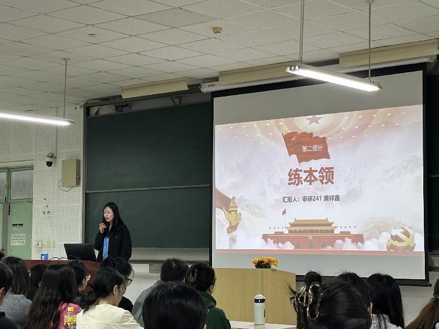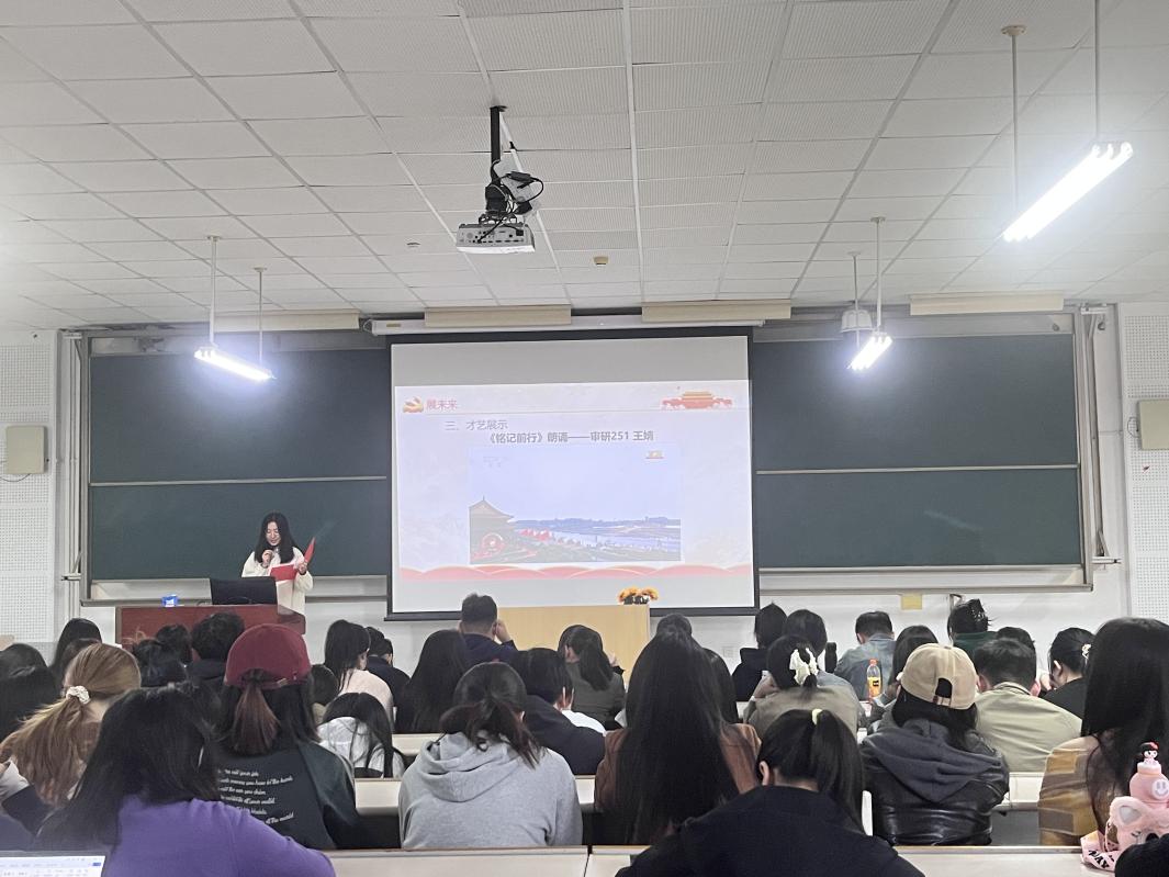 互動環(huán)節(jié),通過“正話反說”等小活動,不僅鍛煉了同學(xué)們的反應(yīng)力和表達(dá)力,還進(jìn)一步加深了同學(xué)們之間的互相協(xié)作與溝通。才藝展示環(huán)節(jié)中,審研25級王婧同學(xué)深情朗誦《銘記前行》,審研24級肖涵同學(xué)高歌《強(qiáng)軍戰(zhàn)歌》,以青春之聲致敬歷史、禮贊和平,充分展現(xiàn)了經(jīng)管學(xué)子昂揚(yáng)向上的精神風(fēng)貌。