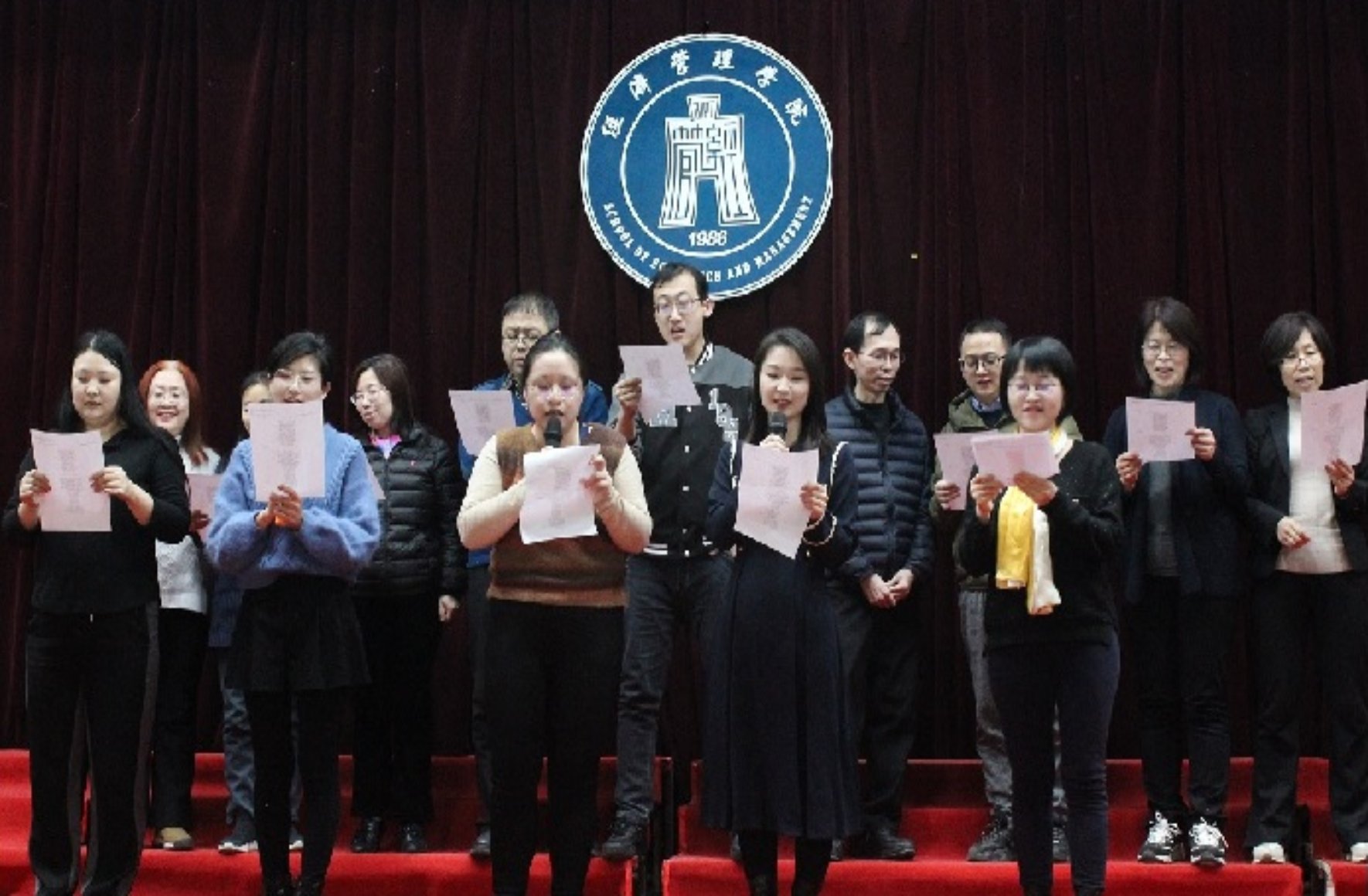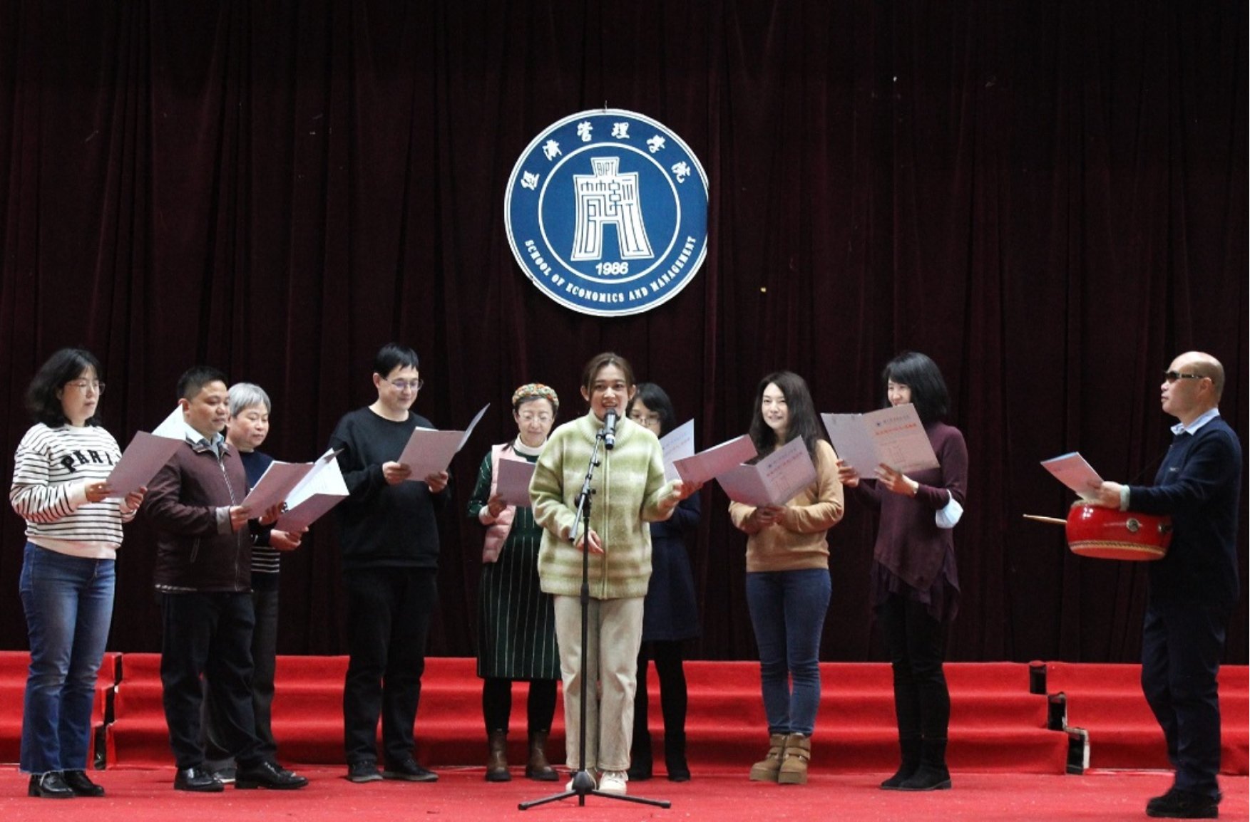 經濟管理學院李峰書記代表領導班子做了熱情洋溢的致辭,總結了經濟管理學院一年來在人才培養、學科建設、科學研究、隊伍建設等方面取得的成績,并向全體教職員工以及同學們表達了美好的新年祝愿!