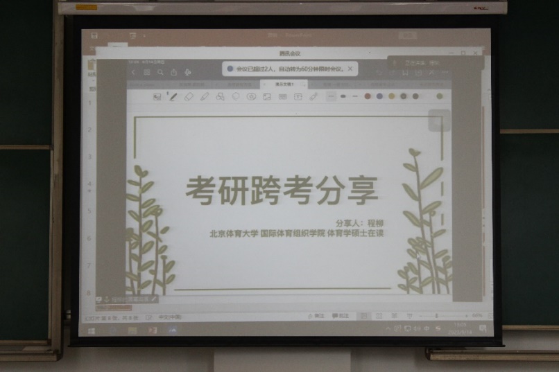 第五位分享者是考入北京體育大學攻讀中外體育人文交流專業碩士的程柳。程柳首先向大家介紹了她選擇跨考的原因,并告訴有跨考意向的同學們一定要選擇好適合的專業以及學校。其次,她分享了自己復習公共課和專業課的心得,推薦了英語、政治兩門科目的輔導教師。對文科考研的背誦難題,她提供了自己的背誦思路,如模塊拆分、制定自己的背誦材料、利用艾賓浩斯遺忘曲線制作背誦計劃表等。