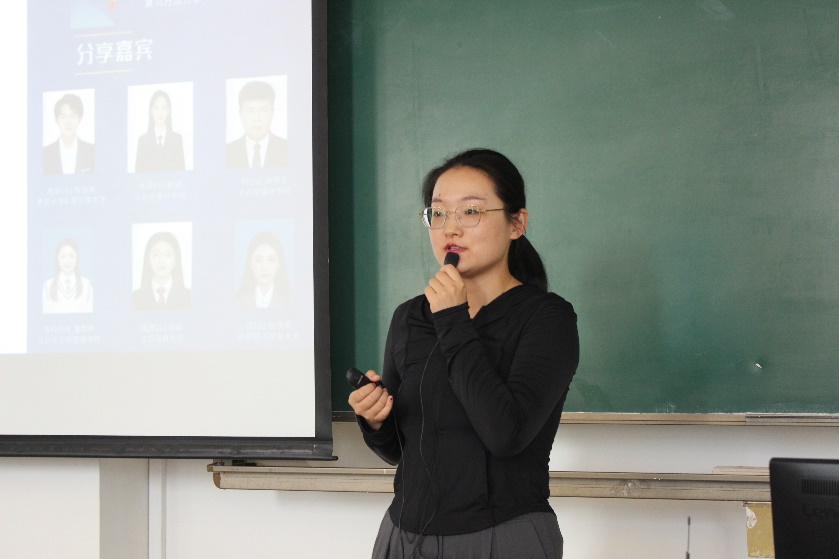 第二位分享者是考入本校攻讀審計專碩的趙穎。她以自身備考本校審計專碩的經歷,告訴同學們考研院校選擇要考慮備考難度與畢業后的就業地區,也向同學們介紹了各科目的學習方法,并推薦了一些培訓教師、復習書籍與學習APP,例如B站、海綿MBA等。