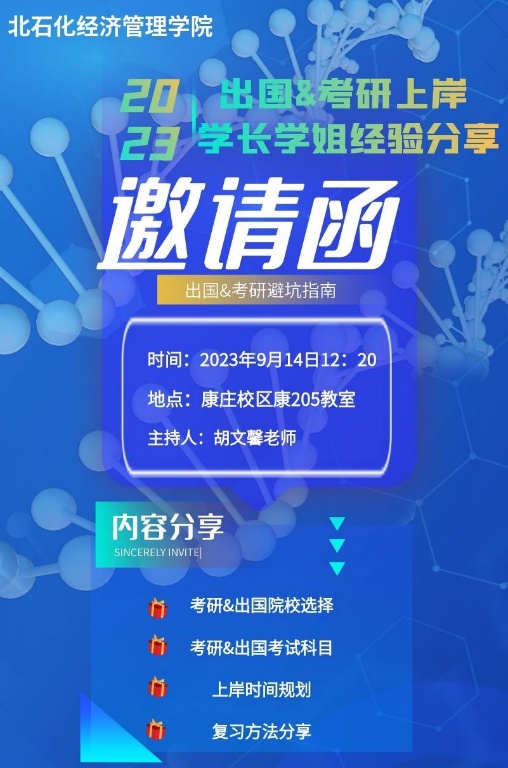 為增強學生考研備考經驗,2023年9月14日,經濟管理學院在康205舉行了一場考研經驗分享會。分享會由經濟管理學院工商系教師胡文馨主持,電商191班陳銘瑞、電商191班趙穎、電商191班程柳、物192麻博文、國182倪念南、工研21潘雨婷等6位同學應邀參加了分享會。