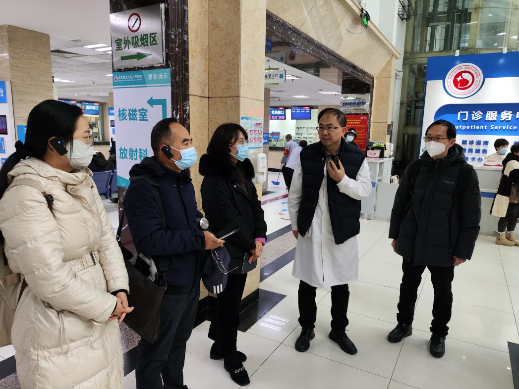 大興區人民醫院副院長黃東明、副院長張彬以及相關科室科長熱情接待。首先,黃東明副院長通過門診大樓掛號、結算、采血、核磁檢查、急診等服務窗口及科室運營情況,實地講解了大興區人民醫院醫療服務及運營管理現狀。