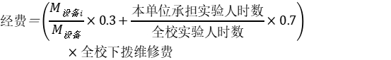各教學(xué)院(部)和全校承擔實驗人時數(shù)(含上機、聽力等課程人學(xué)時數(shù))均按上學(xué)年末的統(tǒng)計值計。全校下?lián)芫S修費數(shù)額依據(jù)學(xué)校上一年度教學(xué)儀器設(shè)備的使用情況確定。