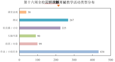 3、2019-2020學年春季學期第十六周,全校云班課新開展教學活動1153項。