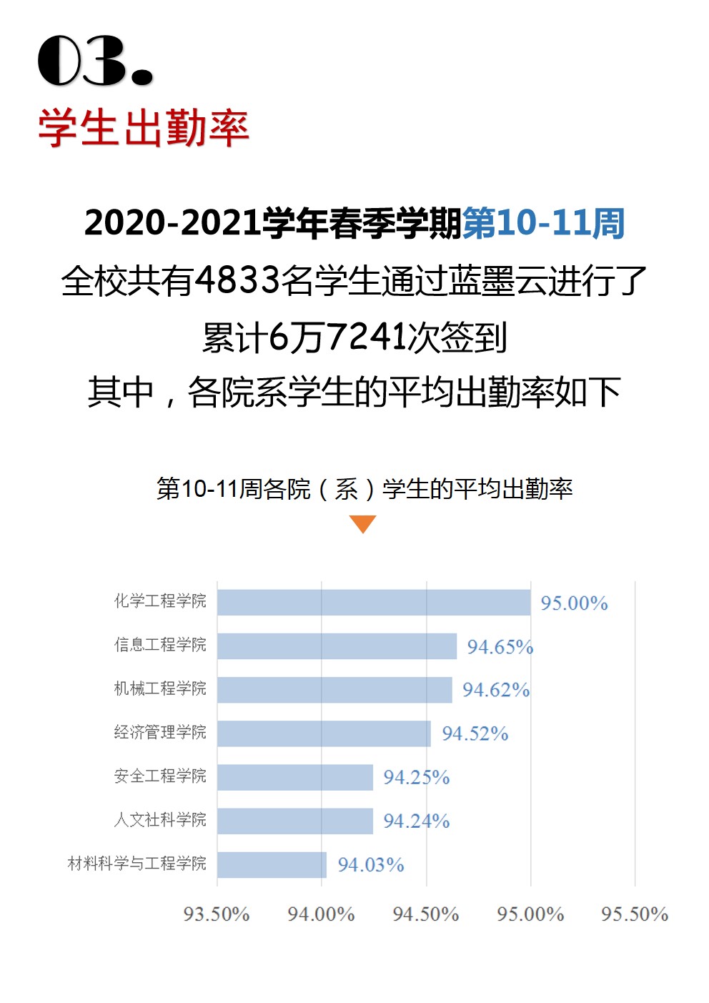 » 2020-2021學(xué)年春季學(xué)期第十至十一周藍(lán)墨云到課率統(tǒng)計(jì)數(shù)據(jù)