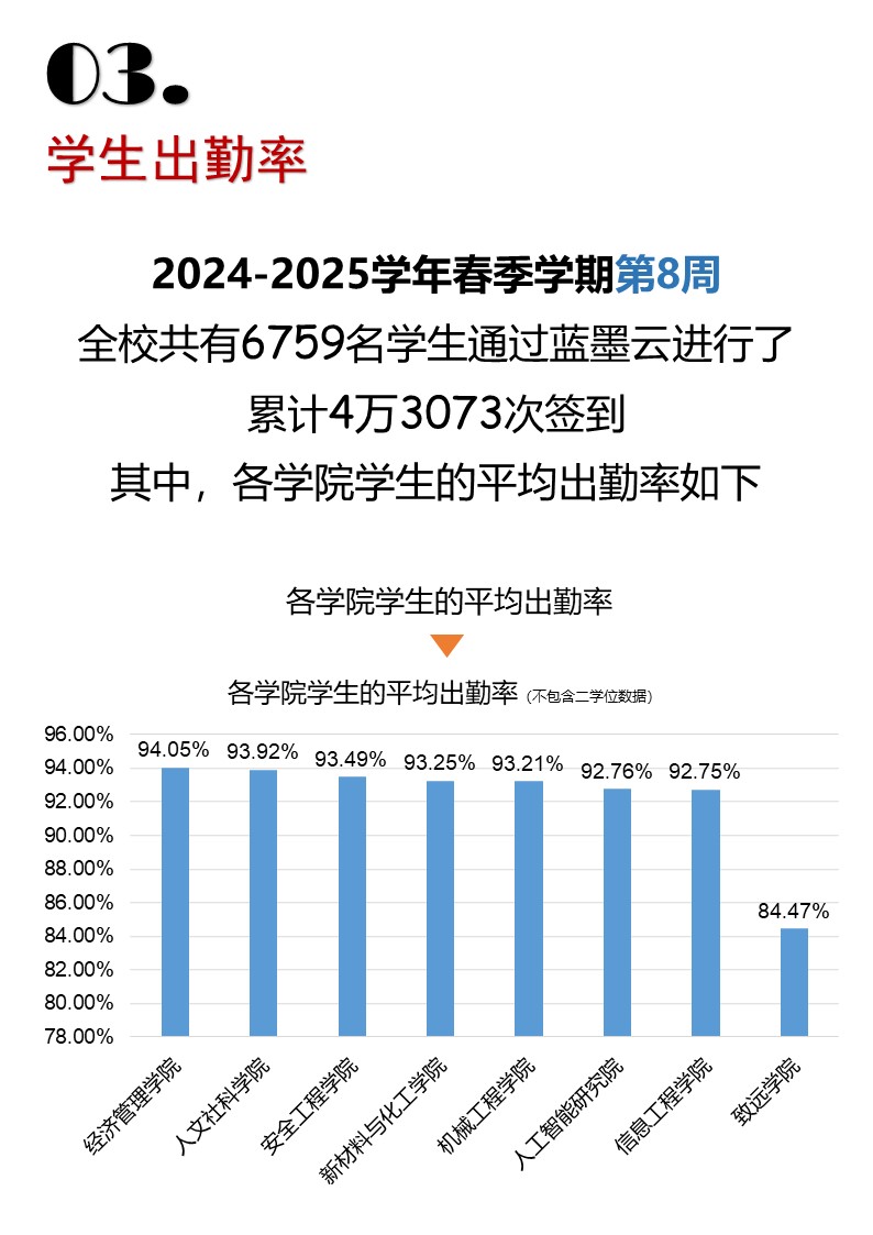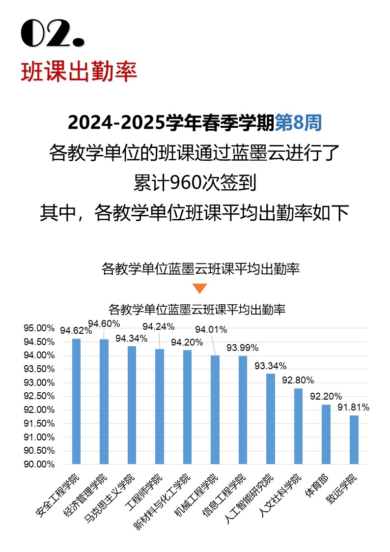 » 2024-2025學年春季學期第八周藍墨云到課率統計數據
