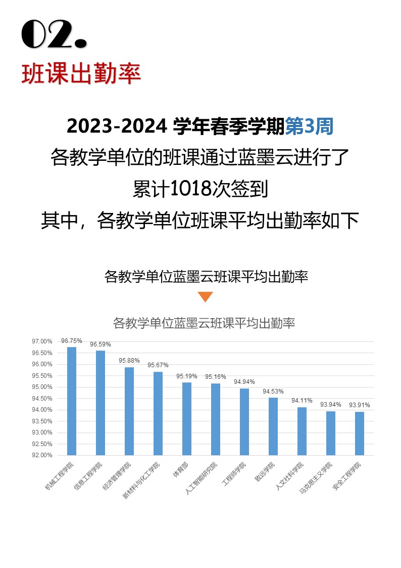 2023-2024學年春季學期第三周藍墨云到課率統(tǒng)計數(shù)據(jù)