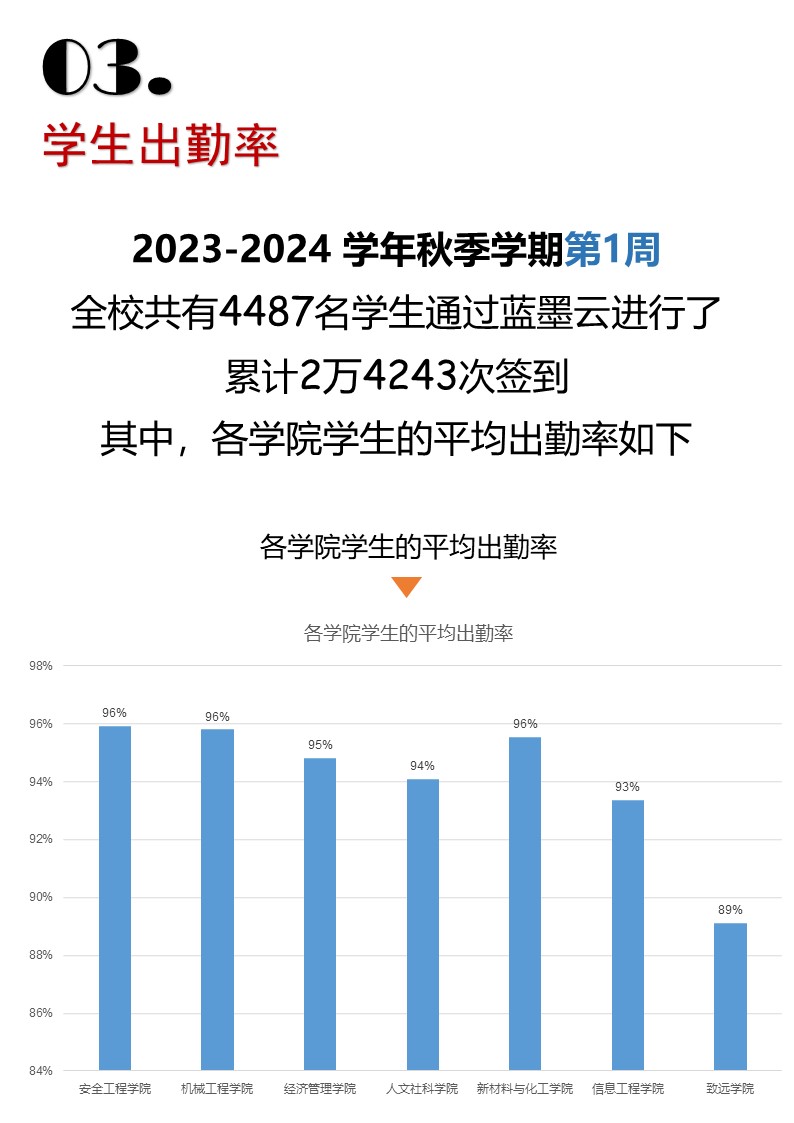 » 2023-2024學年秋季學期第一周藍墨云到課率統計數據