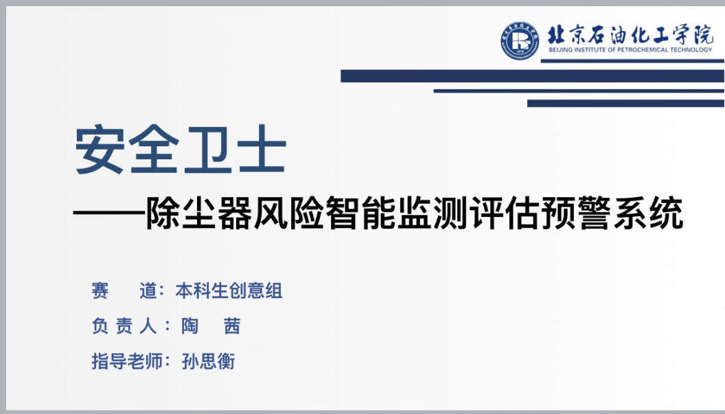 項目簡介:《安全衛士—除塵器風險智能監測評估預警系統》項目產品的設計理念與習近平總書記提出關于“深入實施工業互聯網創新發展戰略”“提升應急管理體系和能力現代化”“從根本上消除事故隱患”三方面的重要指示精神高度吻合,并響應了“工業互聯網+安全生產”的號召。力求克服安全工程正處于起步階段、工業智能化技術相對欠缺、以及目前市面上僅僅是出現了除塵器的危險級別響應,但并沒有此產品對于后端的及時響應與相關措施的相關難點。本產品作為新型高質量產業項目,通過內置在除塵器內建立了與人工智能和大數據結合的除塵系統粉塵爆炸風險監測、評估預警與應急聯動體系。通過對多種保護聯鎖安全設備設施運行狀態參數的實時監測、分析和聯動,結合粉塵自身爆炸特征參數,采用人工智能神經網絡和大數據分析,實現了多因素耦合下除塵系統安全風險等級的精準判定,評估結果并實時反饋相應級別安全管理人員并關聯事故數據庫。此產品有效解決了行業痛點。團隊的產品可以應用于各類工業生產企業需要運用除塵器的領域,主要針對需要對除塵器加強安全管理提升安全生產的工業企業,為目標客戶提供較為準確的安全隱患位置和信息并做出相應的預警,同時有效降低設備運行費用及人工成本。