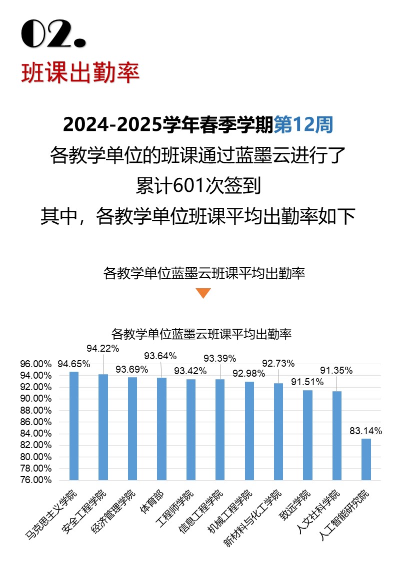 » 2024-2025學(xué)年春季學(xué)期第十二周藍墨云到課率統(tǒng)計數(shù)據(jù)
