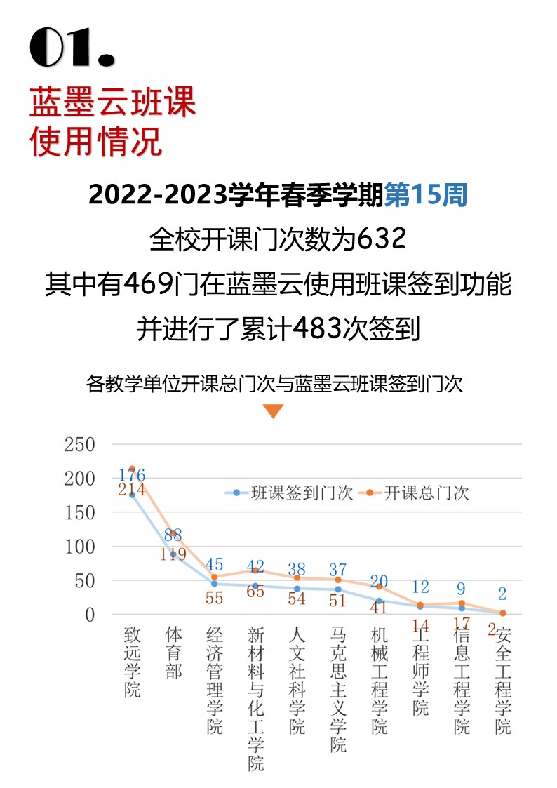 » 2022-2023學年春季學期第十五周藍墨云到課率統計數據