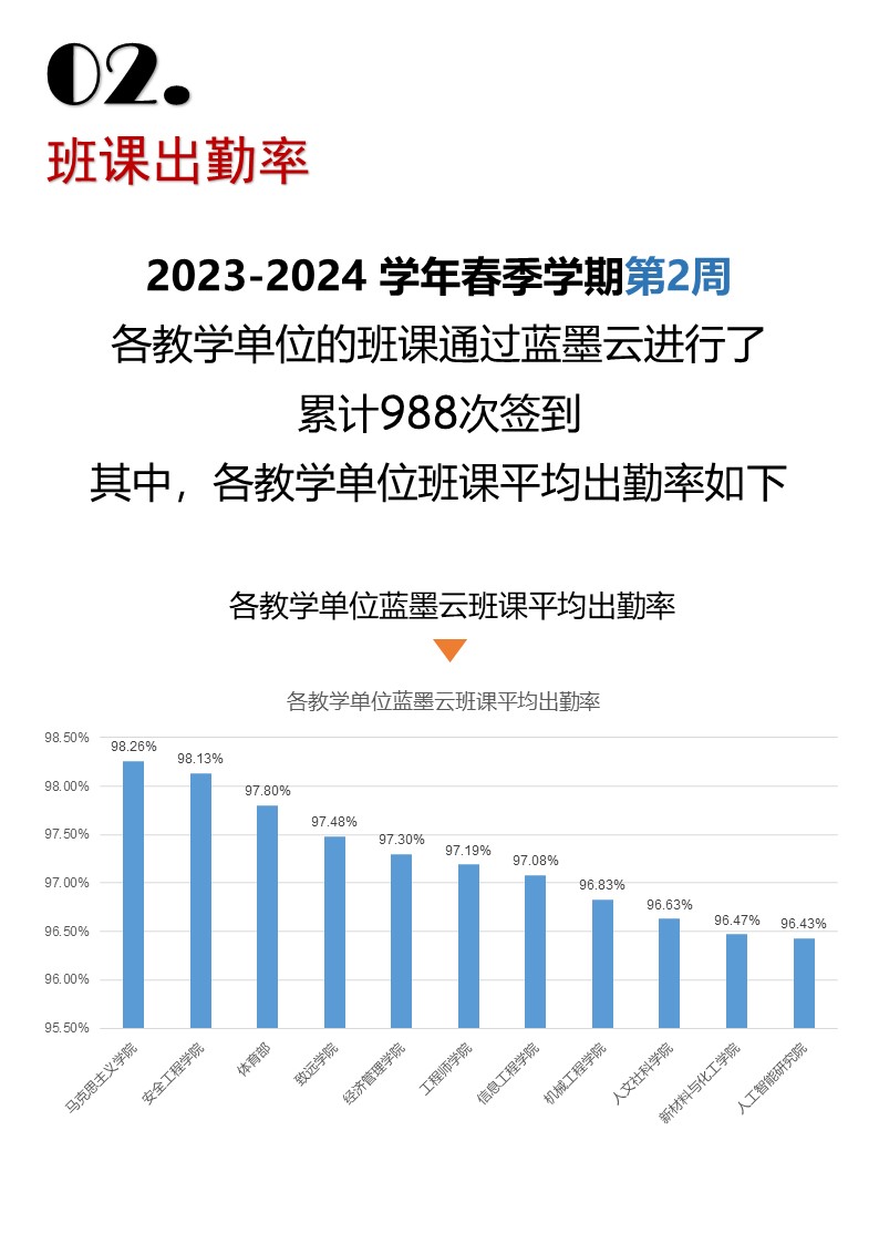 2023-2024學年春季學期第二周藍墨云到課率統計數據