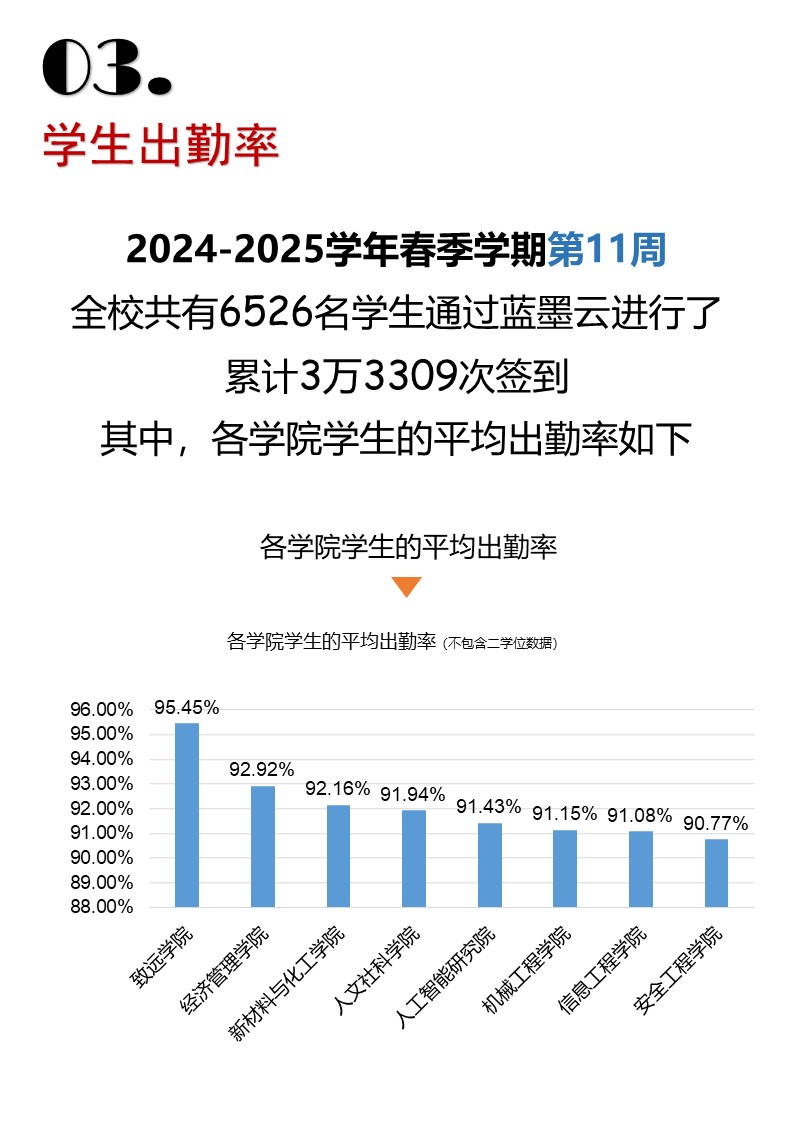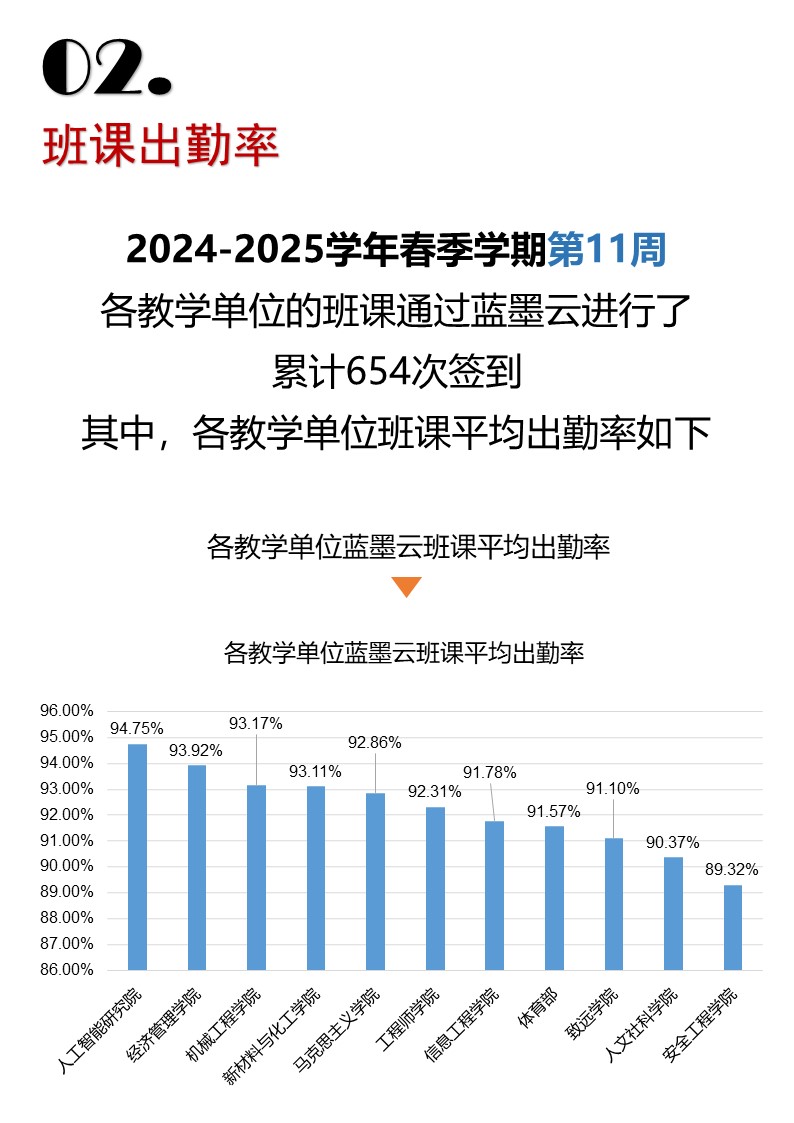 » 2024-2025學年春季學期第十一周藍墨云到課率統計數據