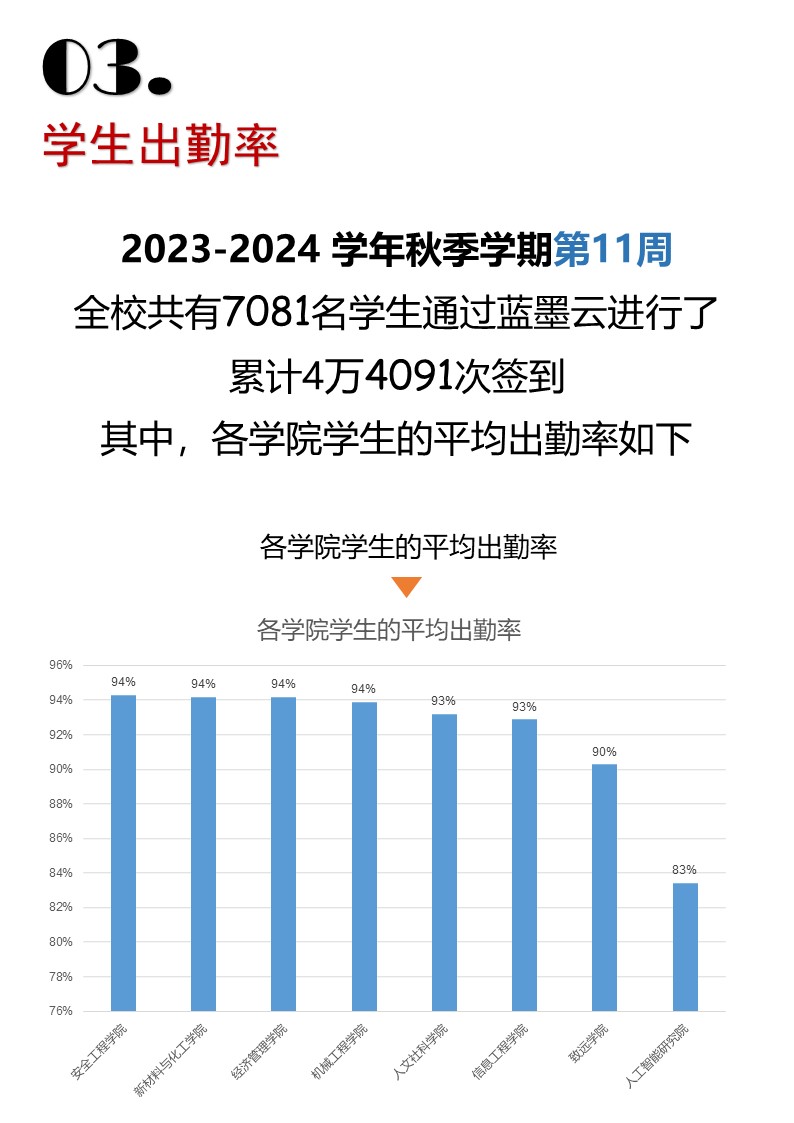 » 2023-2024學(xué)年秋季學(xué)期第十一周藍墨云到課率統(tǒng)計數(shù)據(jù)