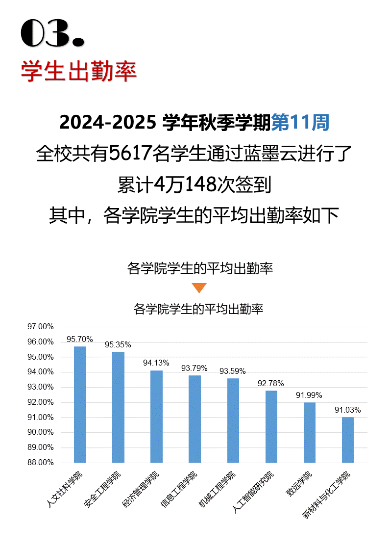 » 2024-2025學年秋季學期第十一周藍墨云到課率統(tǒng)計數(shù)據(jù)