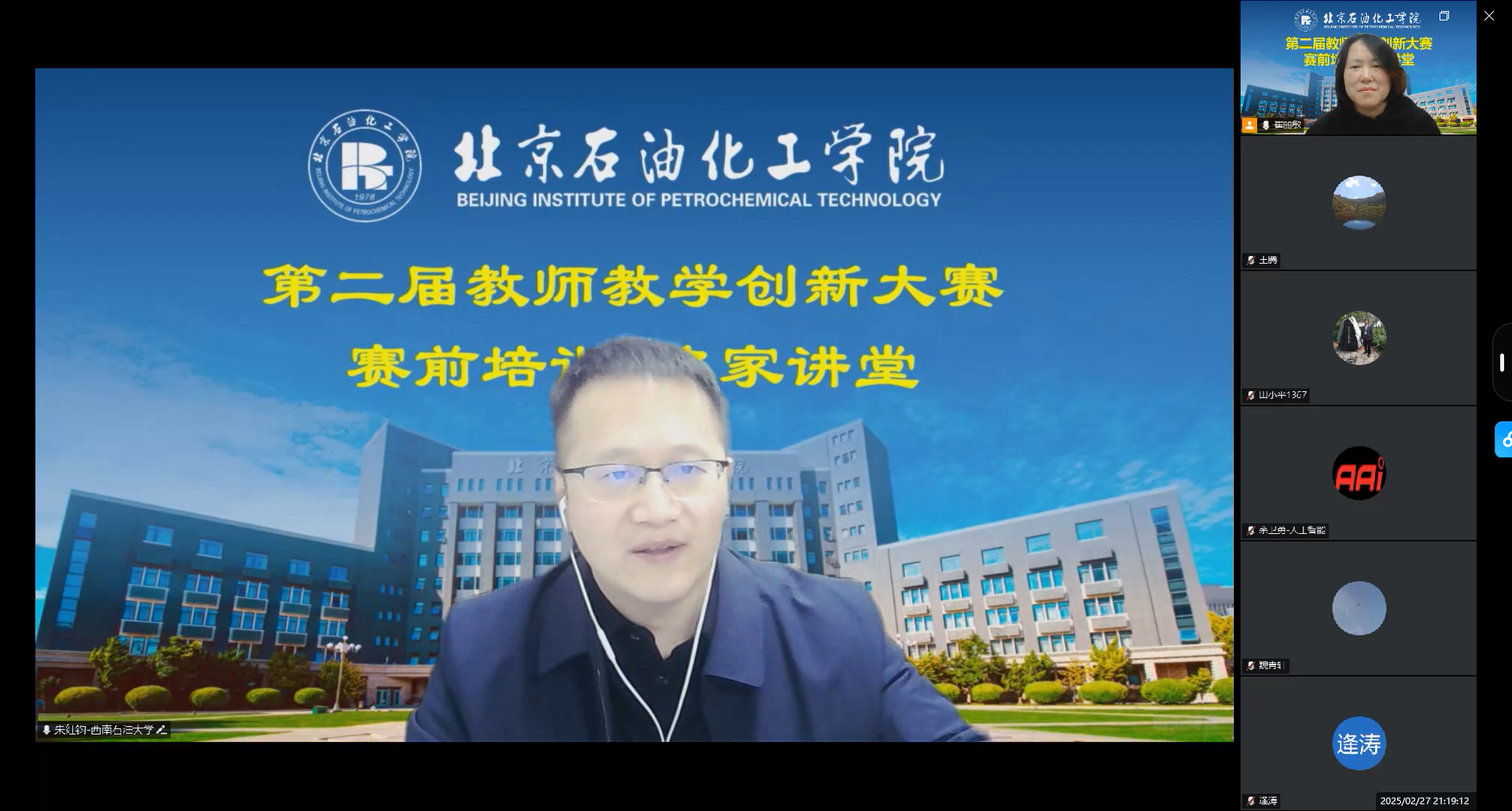 2月27日晚,教務處策劃的“賽前培訓·名家講堂”活動通過騰訊會議圓滿舉行。本次活動旨在為即將舉辦的第二屆校級教師教學創新大賽暨第五屆北京高校教師教學創新大賽賦能,特邀西南石油大學教務處副處長、全國高校教師教學創新大賽(新工科正高組)一等獎獲獎者朱紅鈞教授作專題講座。由教務處副處長崔麗敏主持,全校各學院(部)近150名教師線上參與,共同探索教學創新的破局之道。
