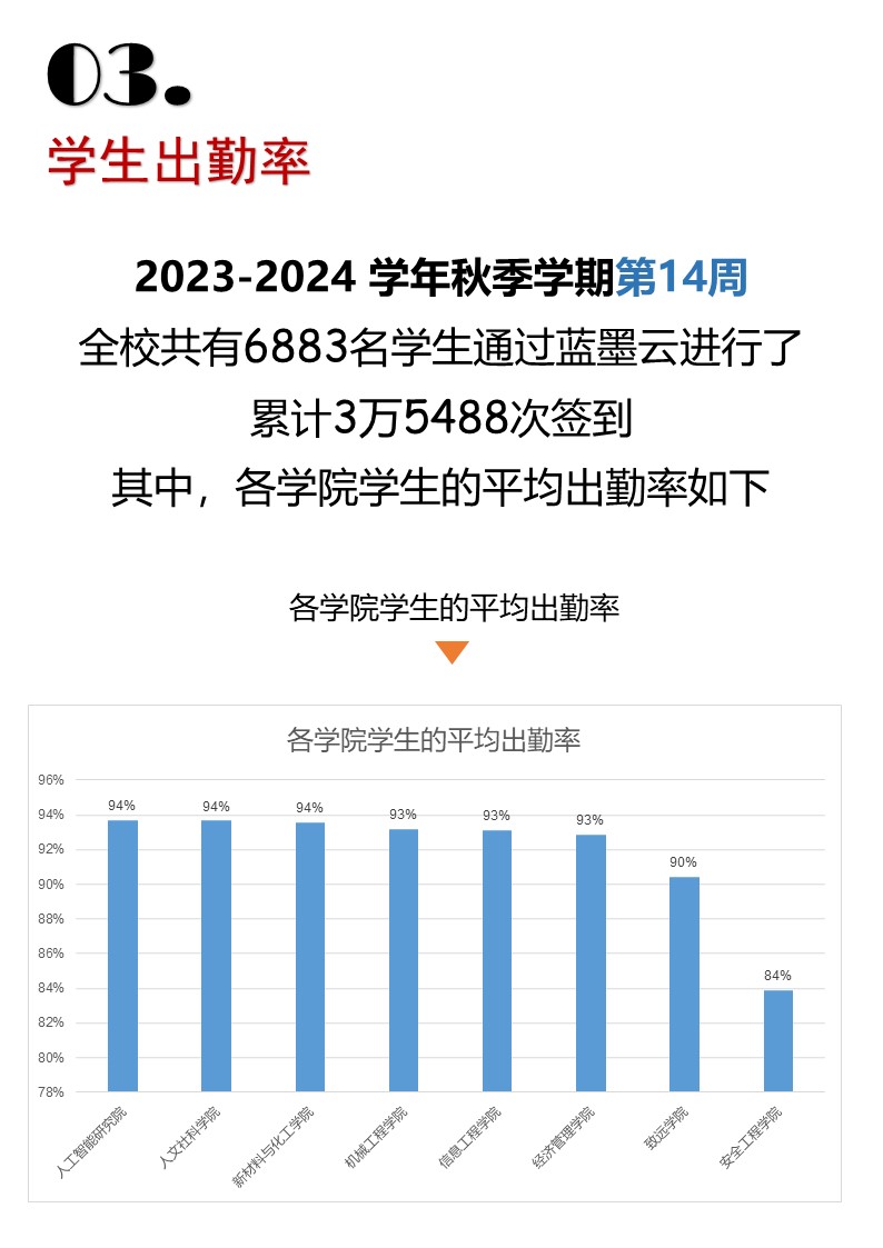 » 2023-2024學年秋季學期第十四周藍墨云到課率統計數據