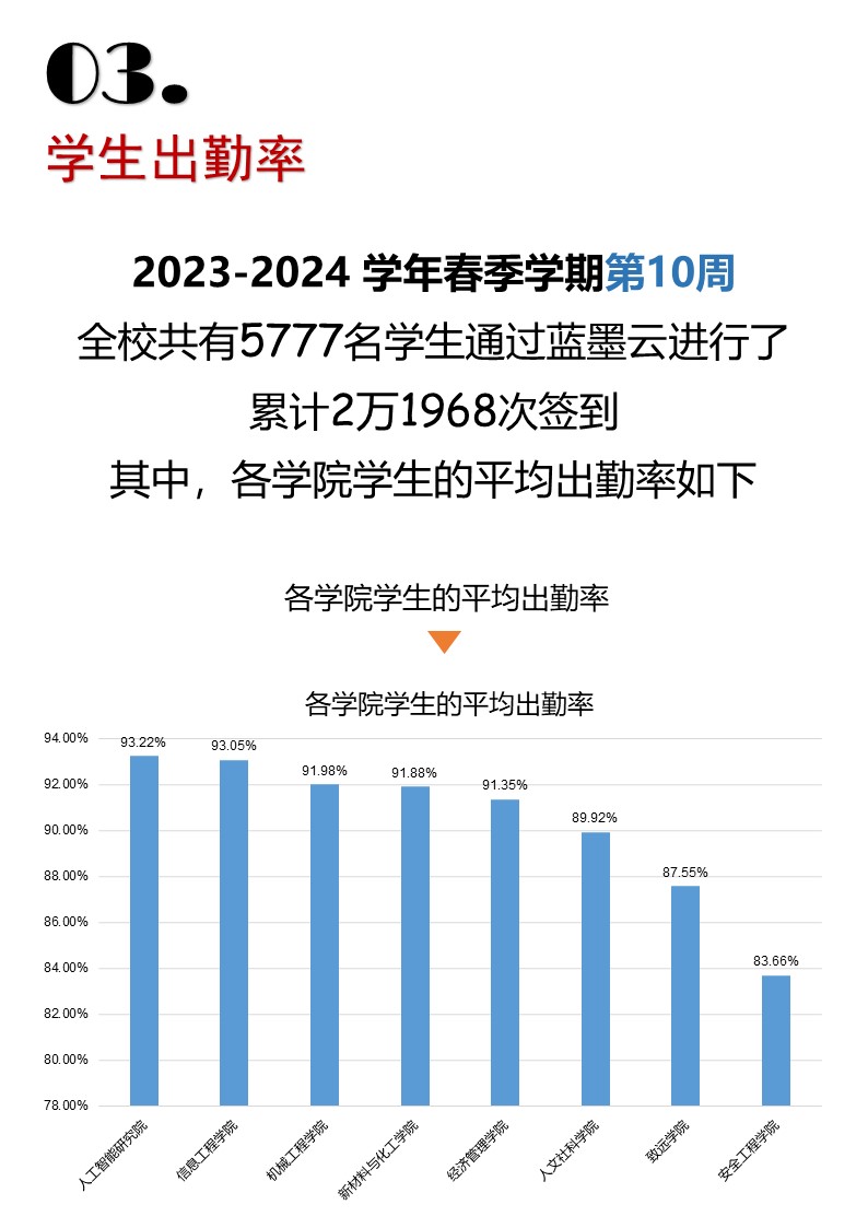 您目前的位置: 首頁» 新聞動態» 2023-2024學年春季學期第十周藍墨云到課率統計數據