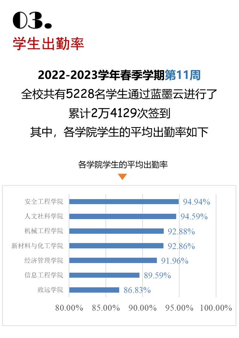 » 2022-2023學(xué)年春季學(xué)期第十一周藍(lán)墨云到課率統(tǒng)計(jì)數(shù)據(jù)