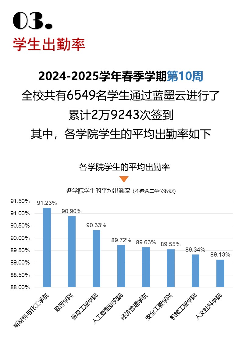 » 2024-2025學年春季學期第十周藍墨云到課率統計數據