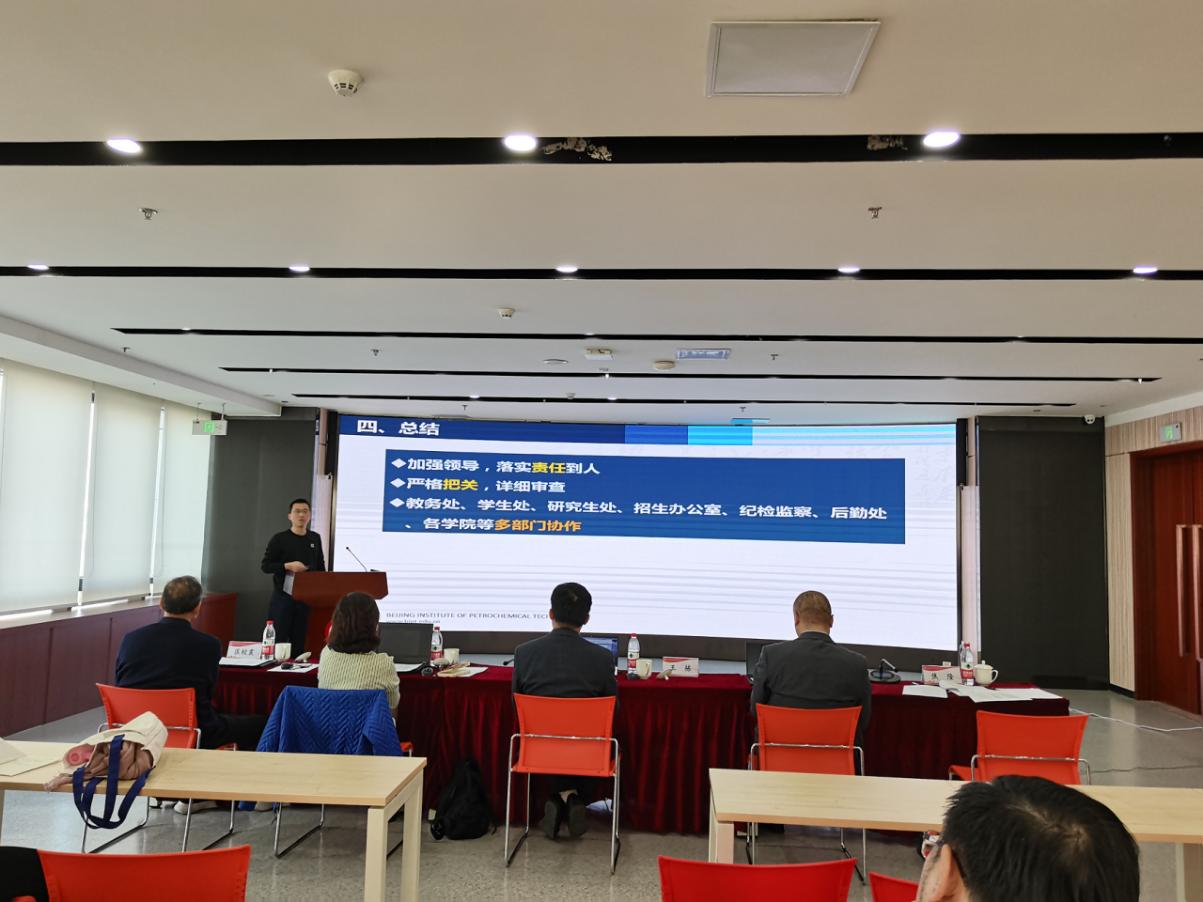 2023年12月5日上午,教務處、研究生處赴北京高校大學生就業創業指導中心向北京市教育委員會專家現場匯報我校2023級本科生和研究生新生入學資格復查、學籍電子注冊工作情況。