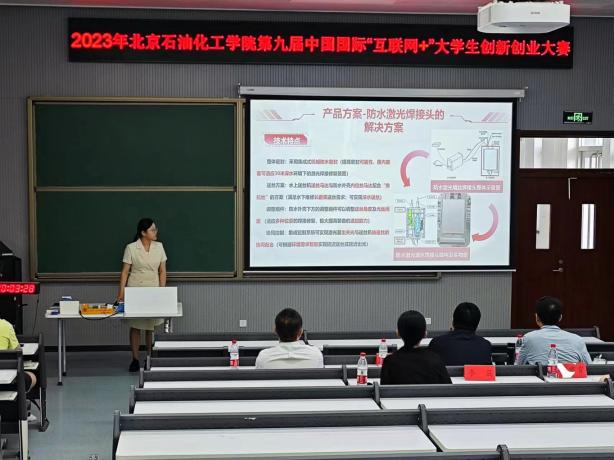 現場舉行了頒獎典禮,陳家慶副校長、閆循華董事長等分別為金獎項目《深海微光-水下激光焊接修復》、《“碎”廢逐污—城鄉(xiāng)家庭用超高效廚余垃圾粉碎設備》頒獎,王騰處長、金鐳教授、靳寶強分別為銀獎項目《安全衛(wèi)士——除塵器風險智能監(jiān)測評估預警系統(tǒng)》、《神兵焊匠——管道自動焊接領航者》、《同學,我們研學吧——地質研學理念開拓者》頒獎,李海萍副處長、栗霄霄、李蕊分別為銅獎項目《“十痊十鎂”——新型抗菌載藥可降解鎂合金》、《智能虛擬仿真平臺智能工訓系統(tǒng)》、《“濾”水青山——光催化膜治理水污染引領者》、《重構“河西走廊能源”新模式,點燃“祁連山農牧民”新希望!》頒獎,相信獲獎項目一定能在第九屆“中國國際‘互聯網+’大學生創(chuàng)新創(chuàng)業(yè)大賽”北京市賽再創(chuàng)佳績!