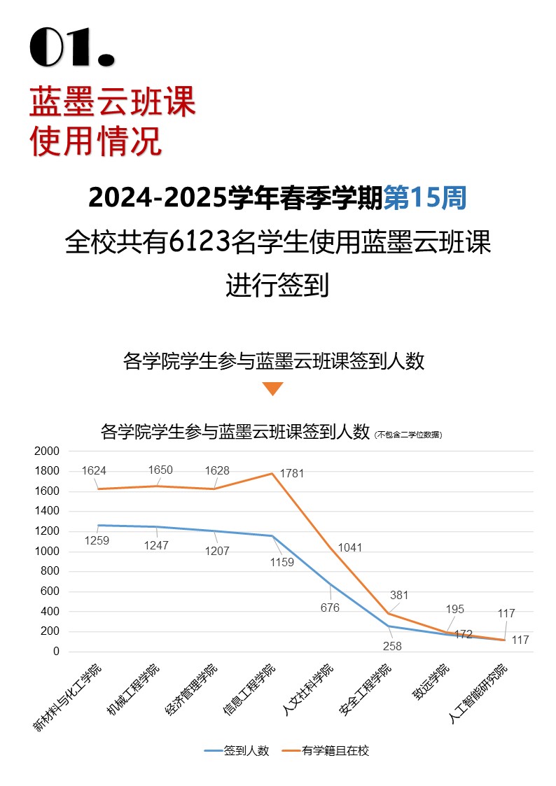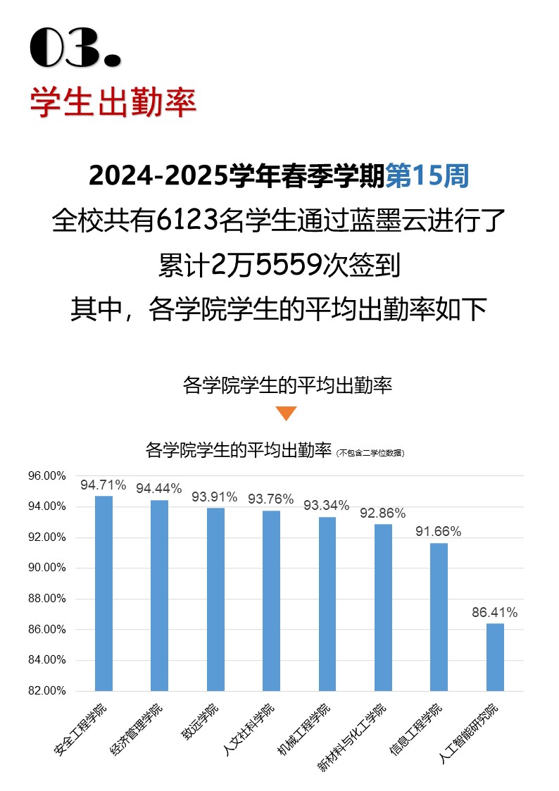 » 2024-2025學年春季學期第十五周藍墨云到課率統計數據