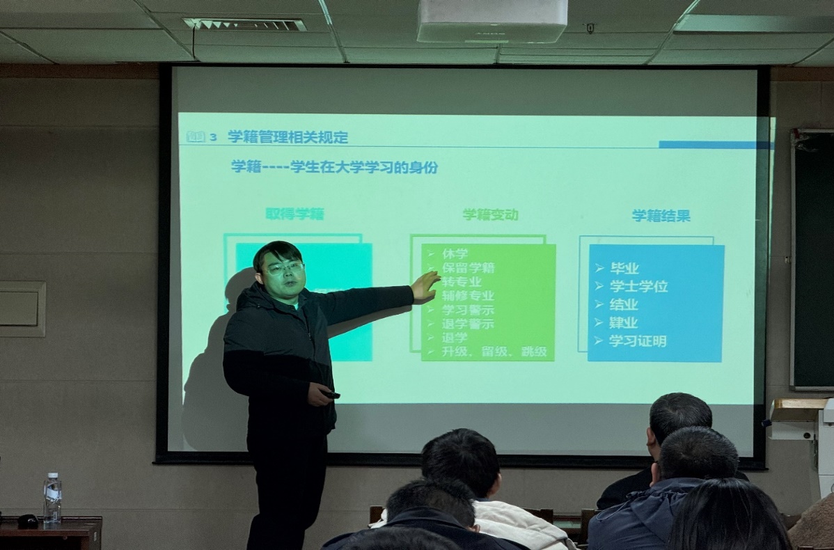 學院王亞飛副院長從學業(yè)指導方面出發(fā),著重強調(diào)了學生學業(yè)發(fā)展、教育教學管理與相關規(guī)定。班主任老師們進一步全面掌握專業(yè)的學業(yè)指導知識,助力學生明確學習目標,提升學業(yè)成績,為學生的未來發(fā)展鋪就堅實道路。