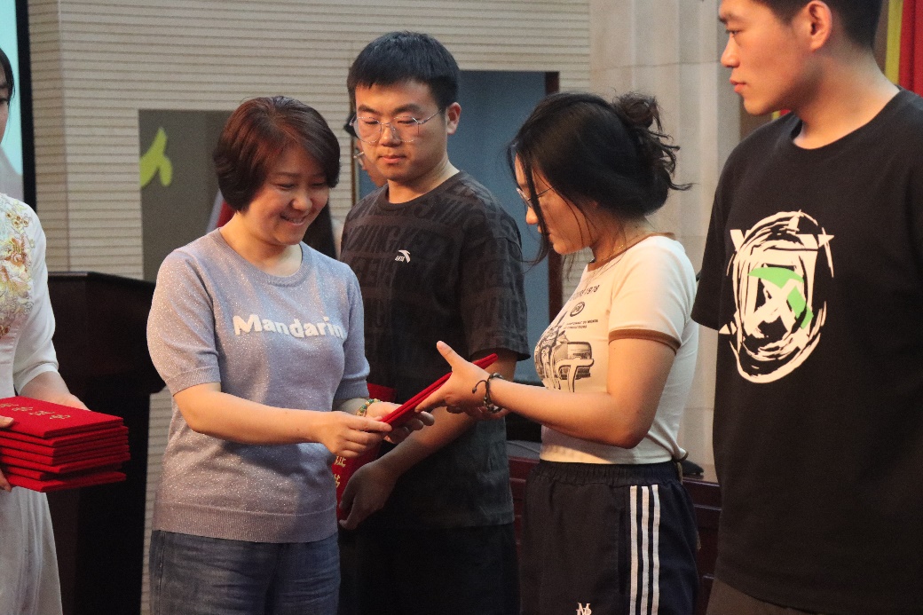 學院團委副書記尹心如為“精神風貌獎”的黨支部頒獎