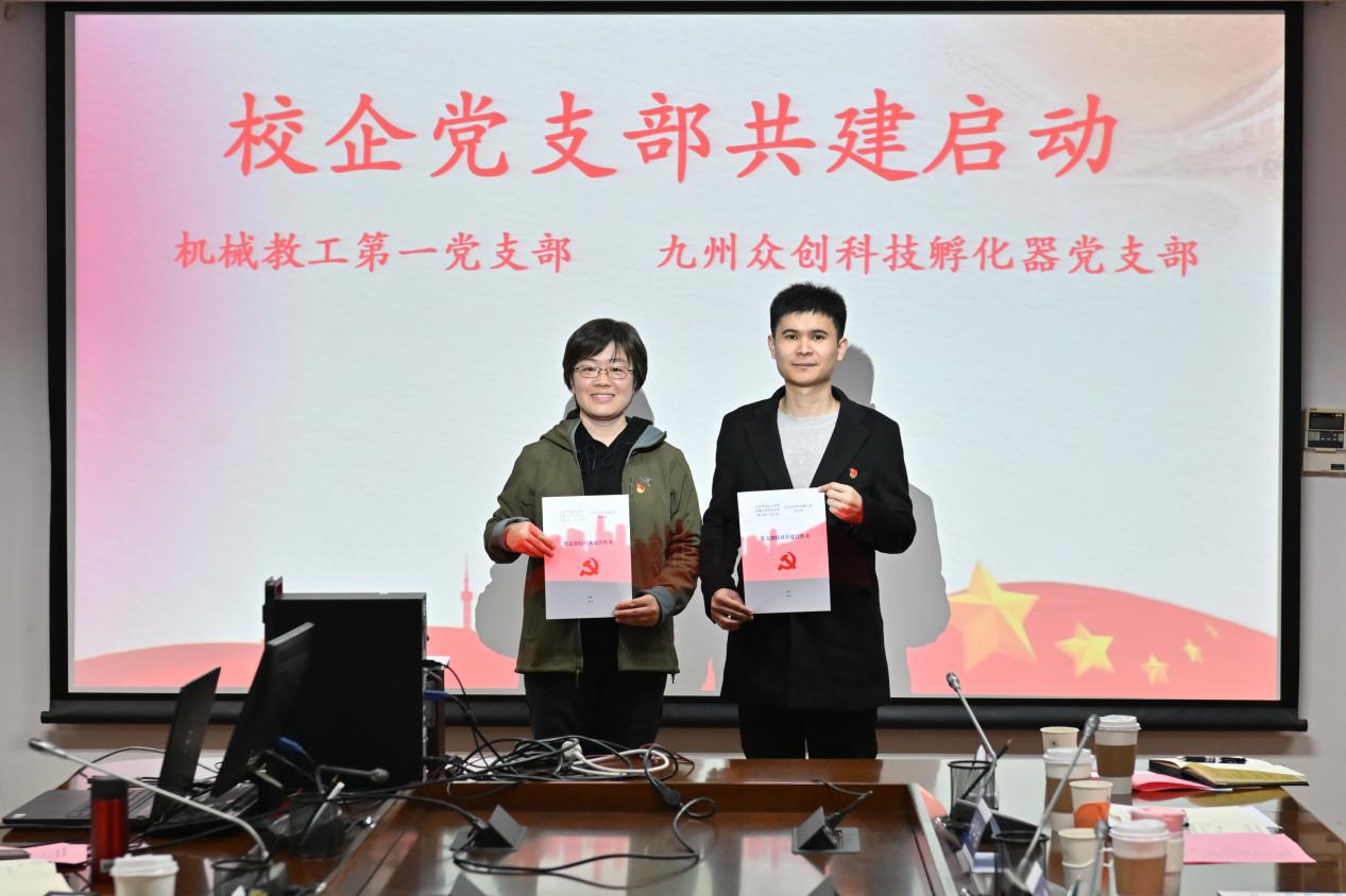 為進一步推進黨建工作和事業發展深度融合,我校機械工程學院黨委教工第一黨支部與九州眾創科技孵化器黨支部進行結對共建。雙方將在黨建工作和業務工作方面開展全面深入合作,雙方支部書記曹瑩瑜和馮奕敏同志交換了共建合作書。