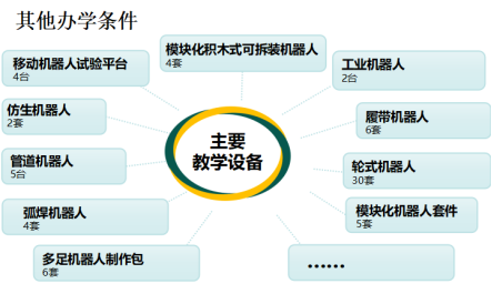 本專業擁有一支高水平教師隊伍,現有專業教師11人,其中教授4人,北京市學術創新團隊1個,北京市優秀教學團隊1個。本專業系北京市一流專業,有國家級一流課程1門和北京市精品課程1門。擁有先進的機器人技術、機器人系統集成技術等相關的教學科研實驗室9個,固定資產3000余萬元。